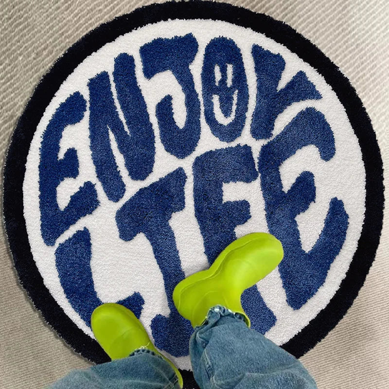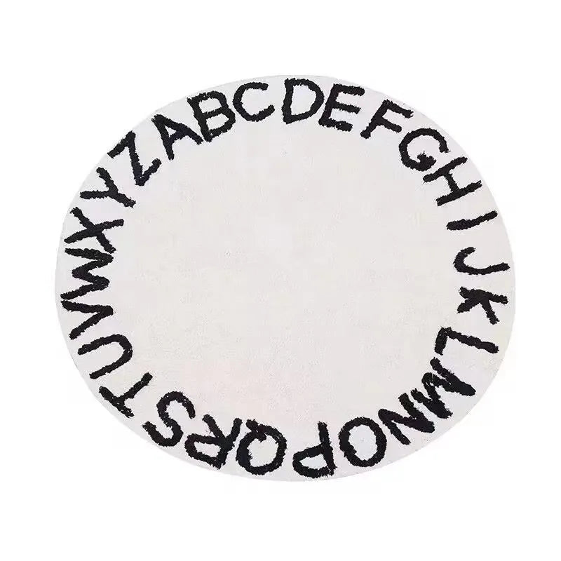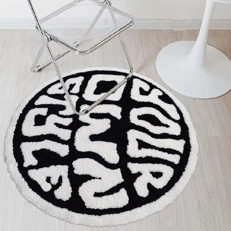 Yeknu 100cm Cool Round Tufted Bedroom Rug Soft Fluffy Letters Mat Bedside Carpet Floor Anti Slip Pad Aesthetic Home Room Decor