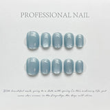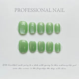 10Pcs Handmade Fake Nail with Y2k Solid Color Design Glitter Colorful Press on False Nails Wearable Short Full Cover Nail Tips