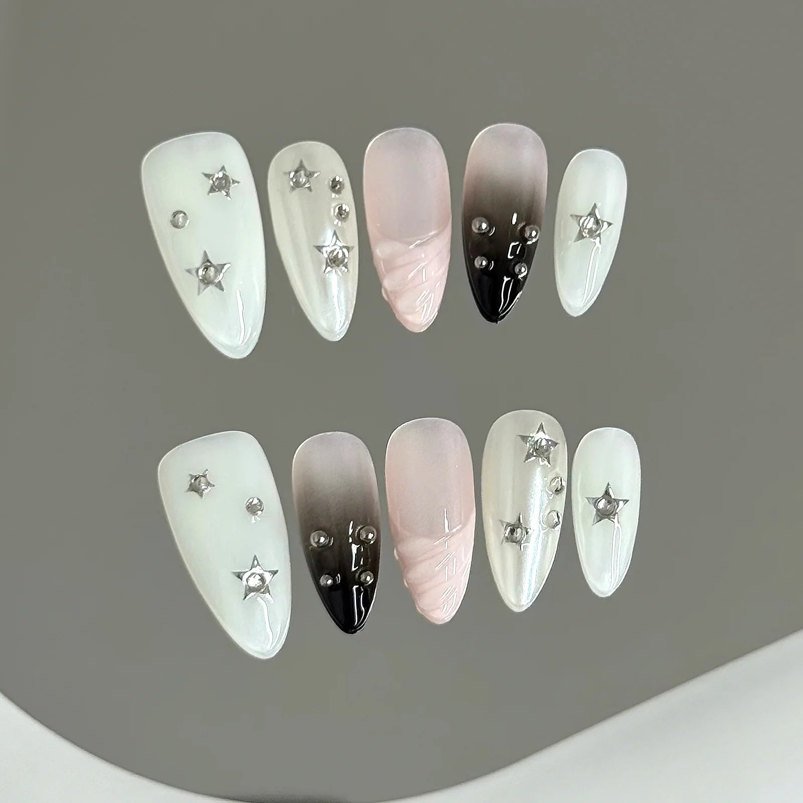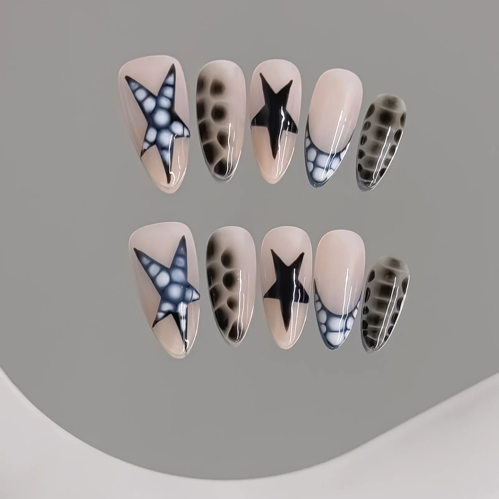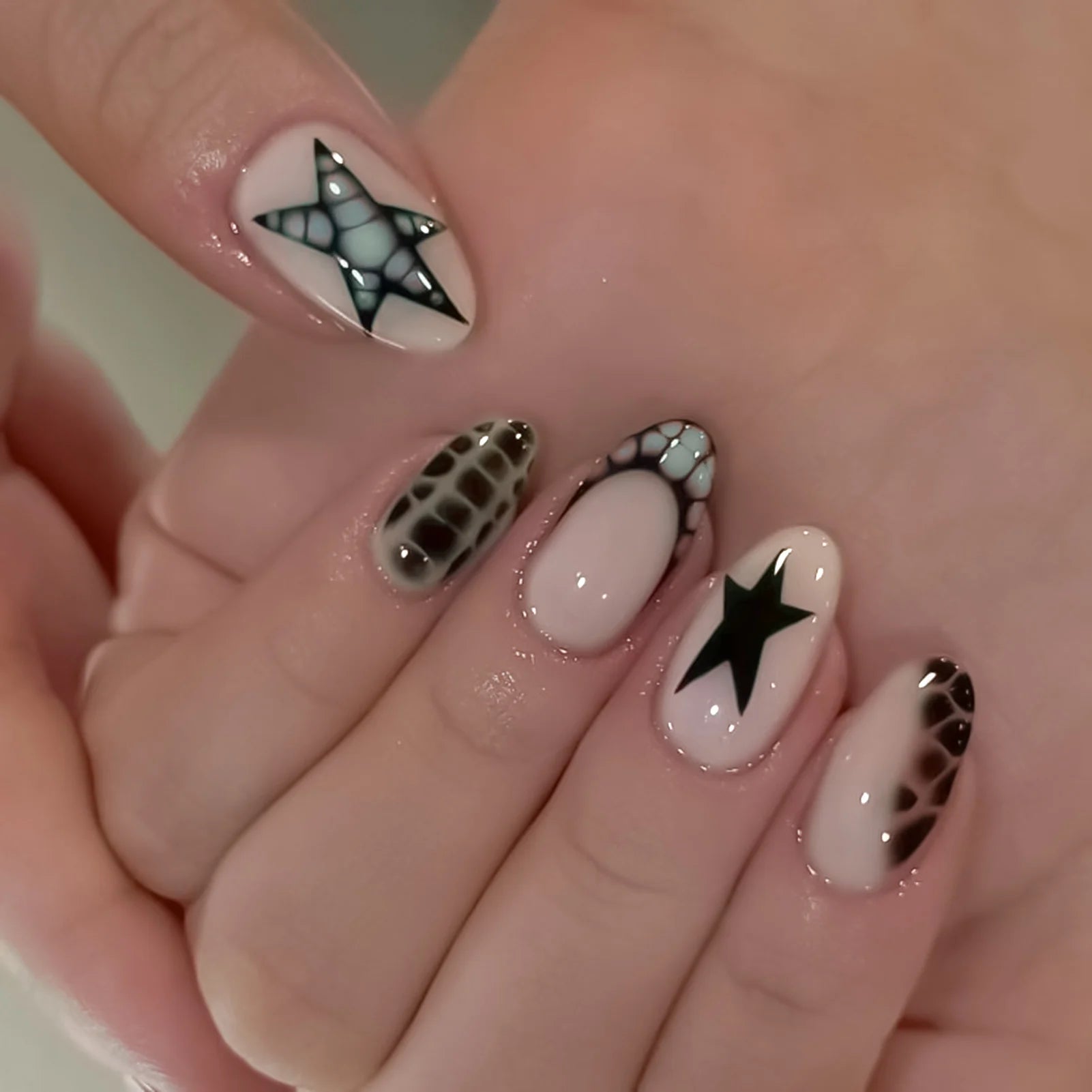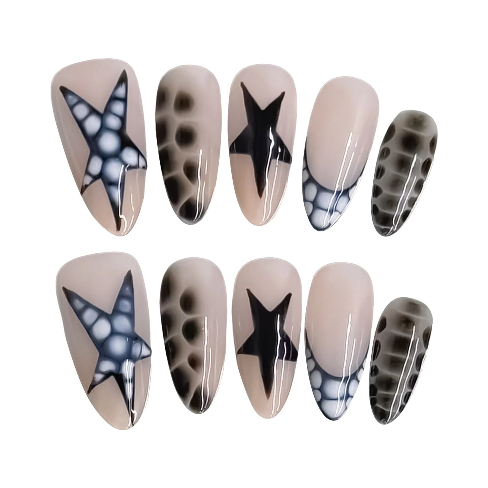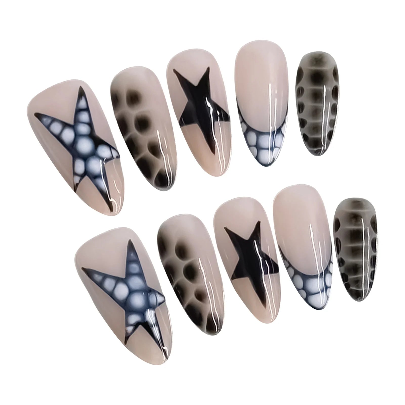 Yeknu 10pcs Handmade False Nails y2k Star Crocodile Pattern Design Fake Nails Wearable Reusable Sweet French Almond Press on Nails