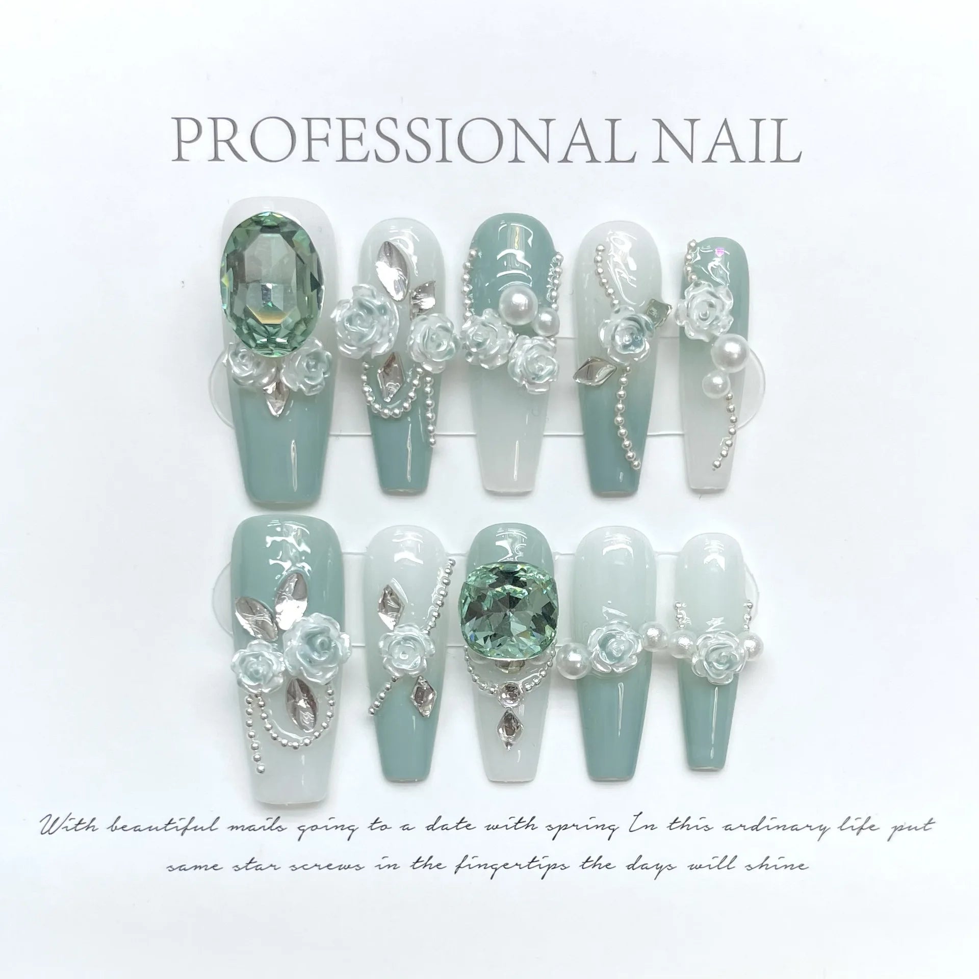 Yeknu 10Pcs Handmade Matte Fake Nails With Tulip Flowers Design Press on Nails Full Cover Acrylic Manicuree Wearable False Nail Tips