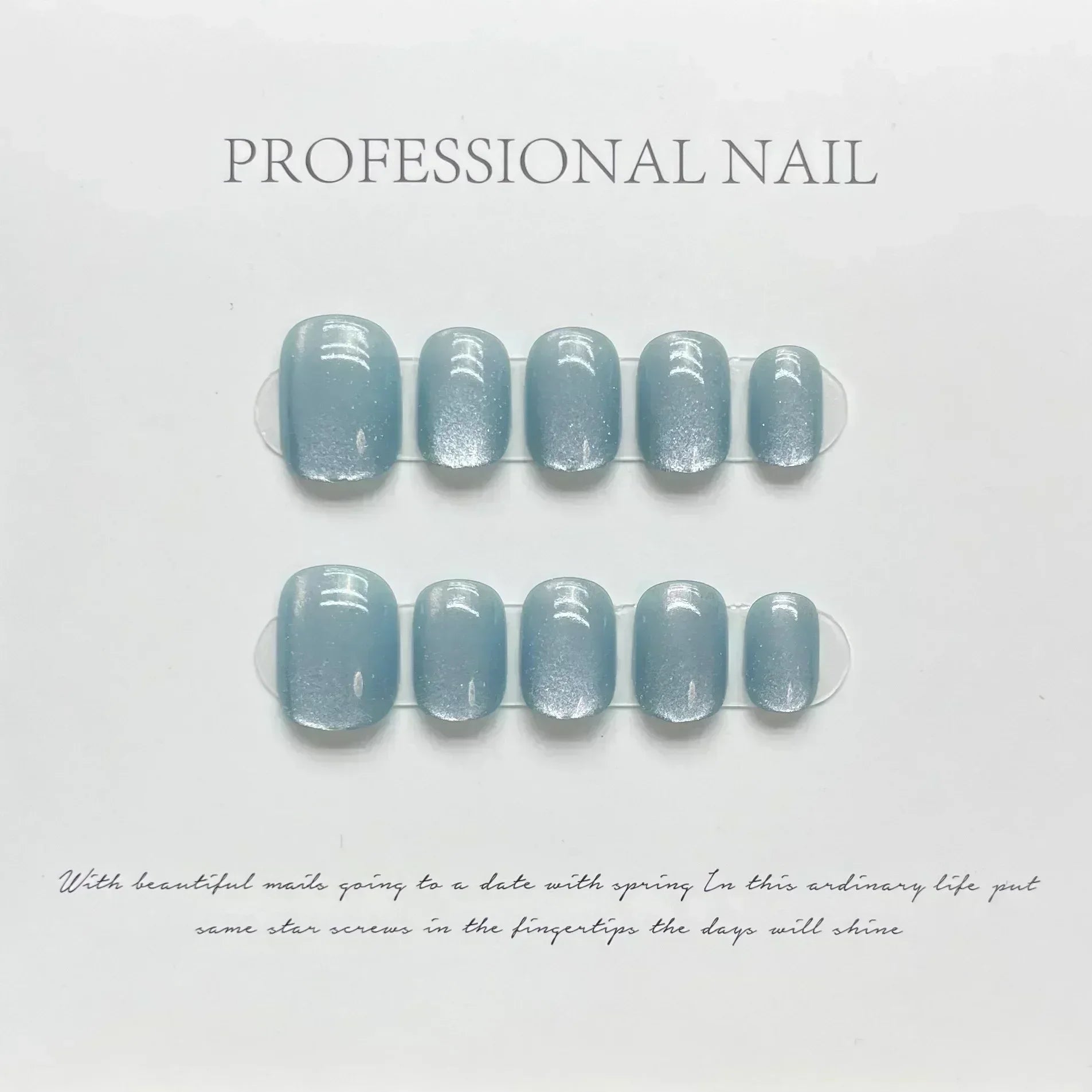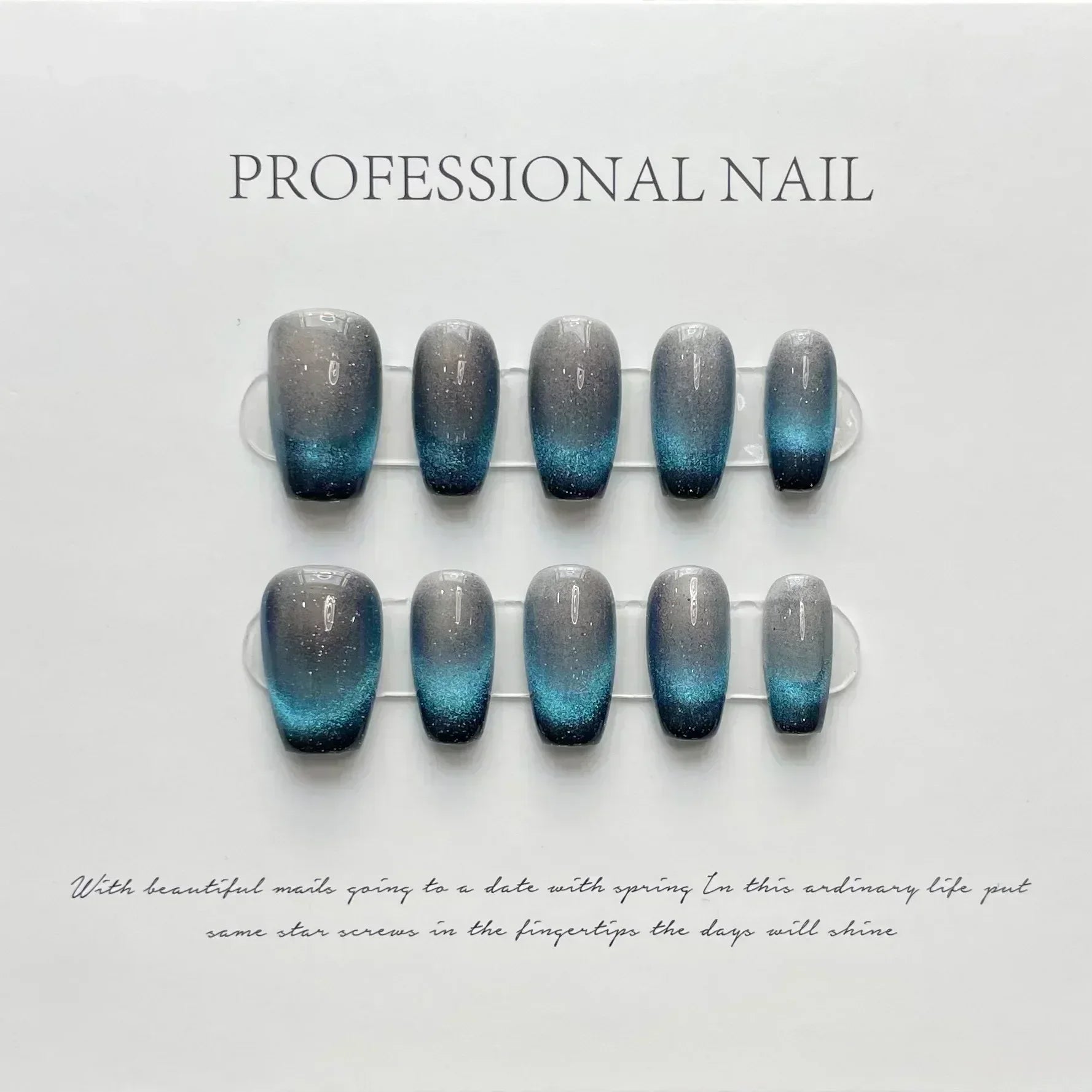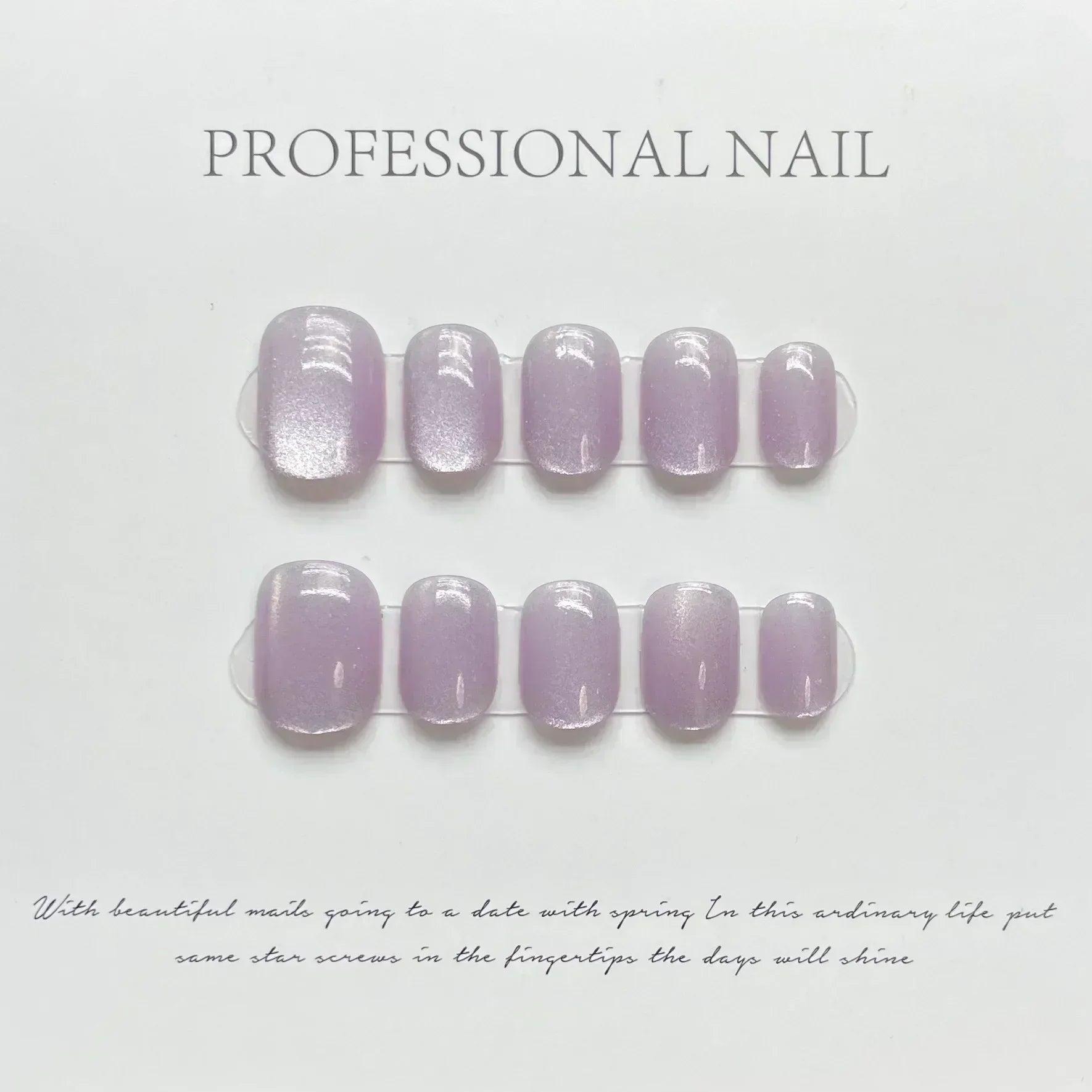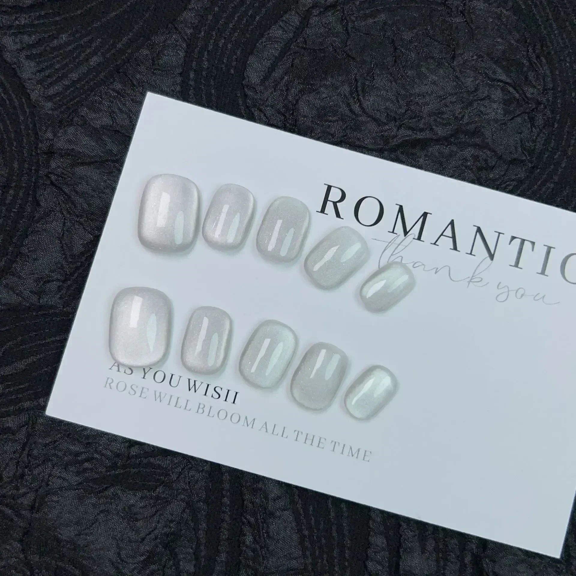 Yeknu 10Pcs Short Handmade White Press On Nails Cat Eyes Pure Ballerina Decoration Wearable False Nails Full Cover Nail Tips Art