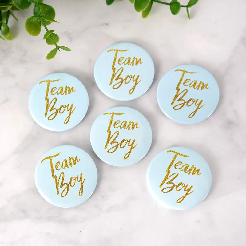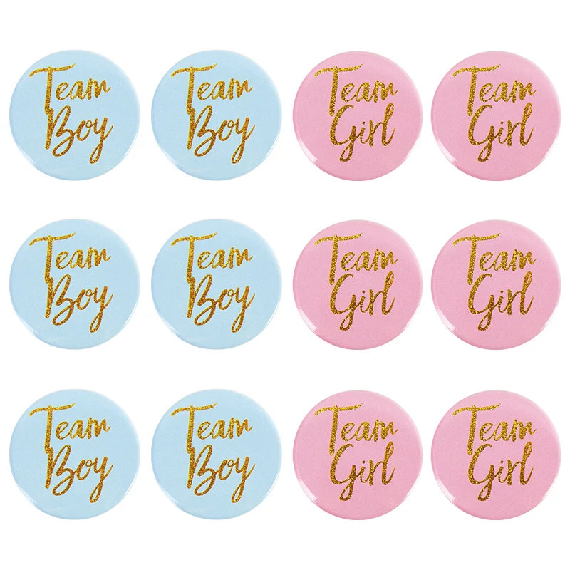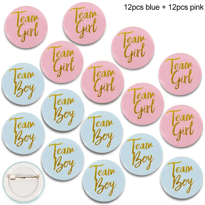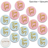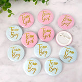 Yeknu 12/24Pcs Team Boy Girl Button Pins Gender Reveal Tinplate Badges Gift for Guests Gender Reveal Party Supplies Baby Shower Decor