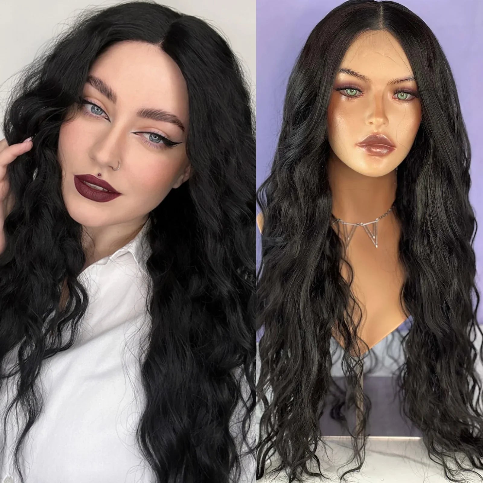 Yeknu 13X4 Black Curly Lace Wig Synthetic Lace Front Wig Wavy Long Black Hair Wig Natural Brunette Colored Lace Frontal Wigs for Women