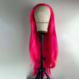 Yeknu 13X4 Hot Pink Wig Long Straight Synthetic Lace Front Wig Natural Rose Red Colored Hair Lace frontal Wigs for Women Party Cosplay