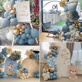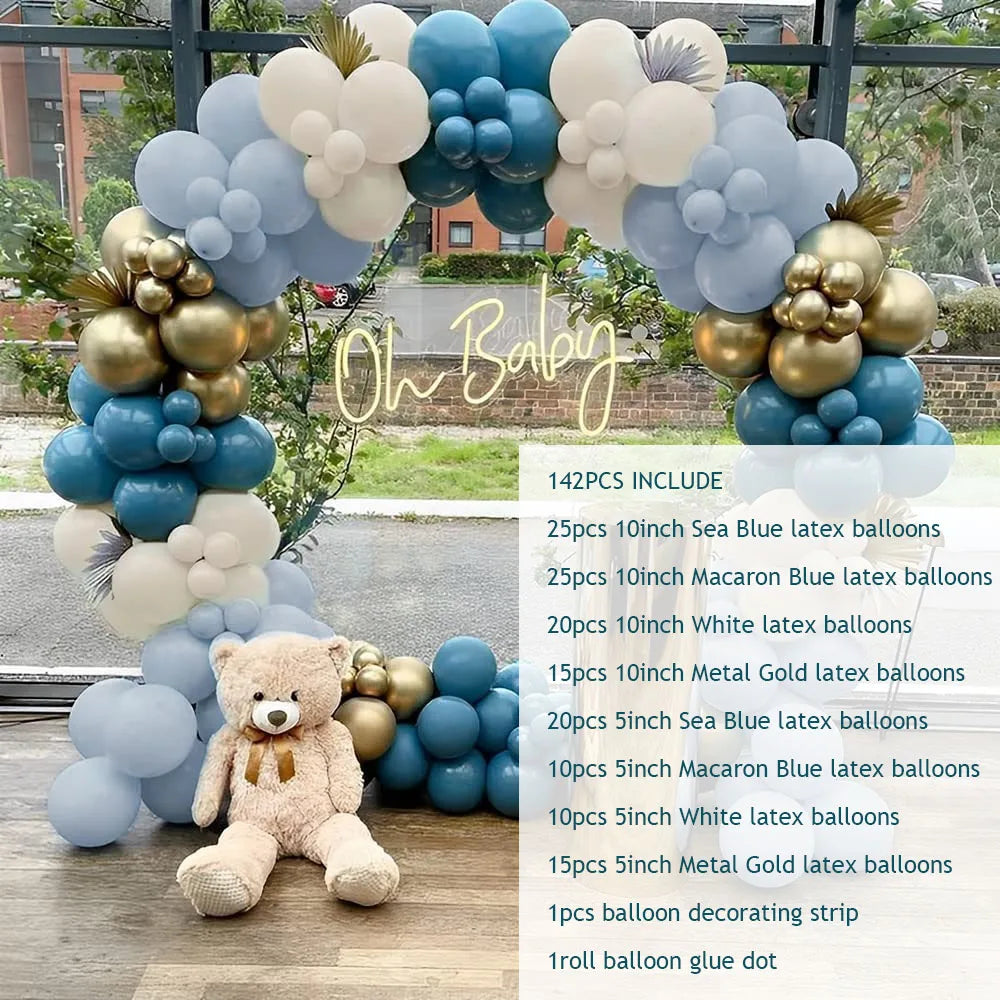 Yeknu 142Pcs Sea Blue Balloon Garland Arch Kit Macaron Blue White Metal Gold Ballons for Boys Men Baby Shower Gender Reveal Decoration