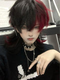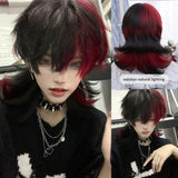 16Inch Black and Red Color Handsome Synthetic Wig With Bang Medium Natural Wavy Hair Wig for Man or Women Cosplay Heat Resistant