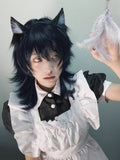 Yeknu 16Inch Blue Black Color Handsome Synthetic Wig With Bang Medium Natural Wavy Hair Wig for Man or Women Cosplay Heat Resistant