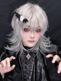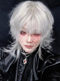 16Inch Silver White Color Handsome Synthetic Wig With Bang Medium Natural Wavy Hair Wig for Man or Women Cosplay Heat Resistant