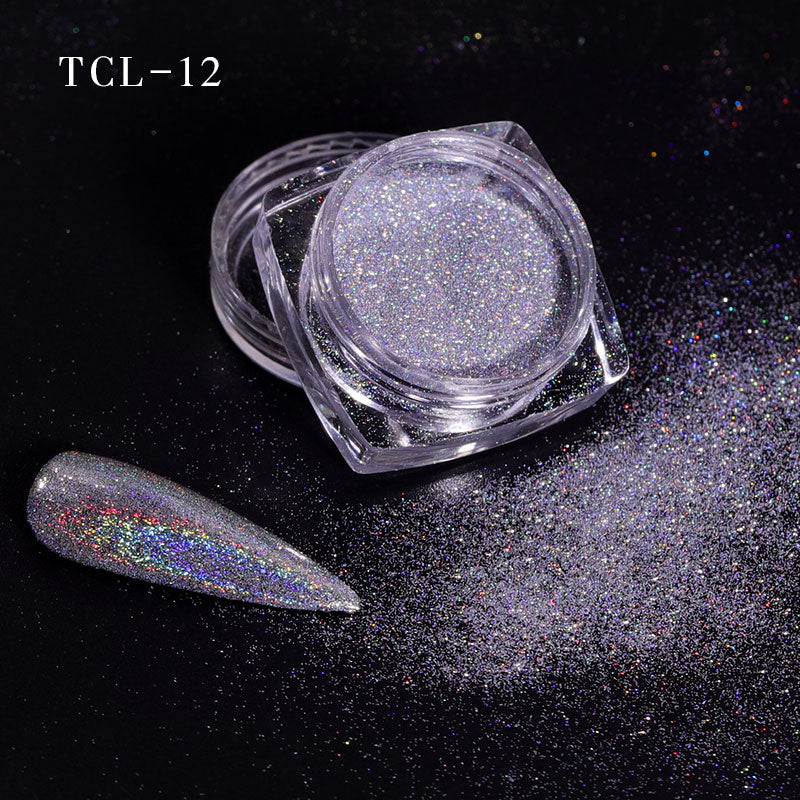 Yeknu 1Box Nail Mirror Glitter Powder Laser Holographic Powder Metal Effect Nail Glitter Gold Nail Art UV Gel Polish Chrome Sheet
