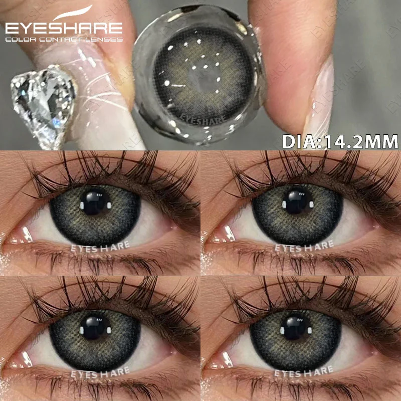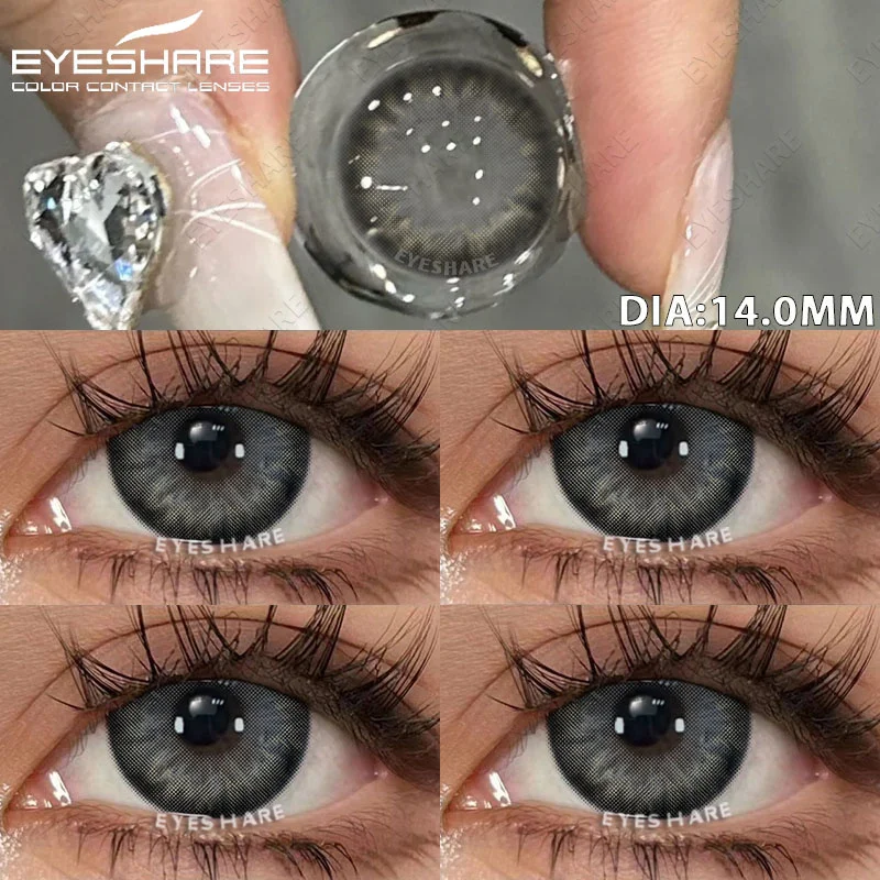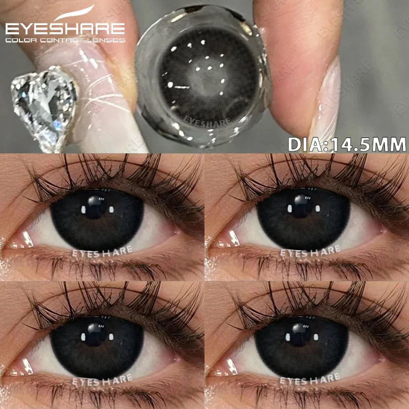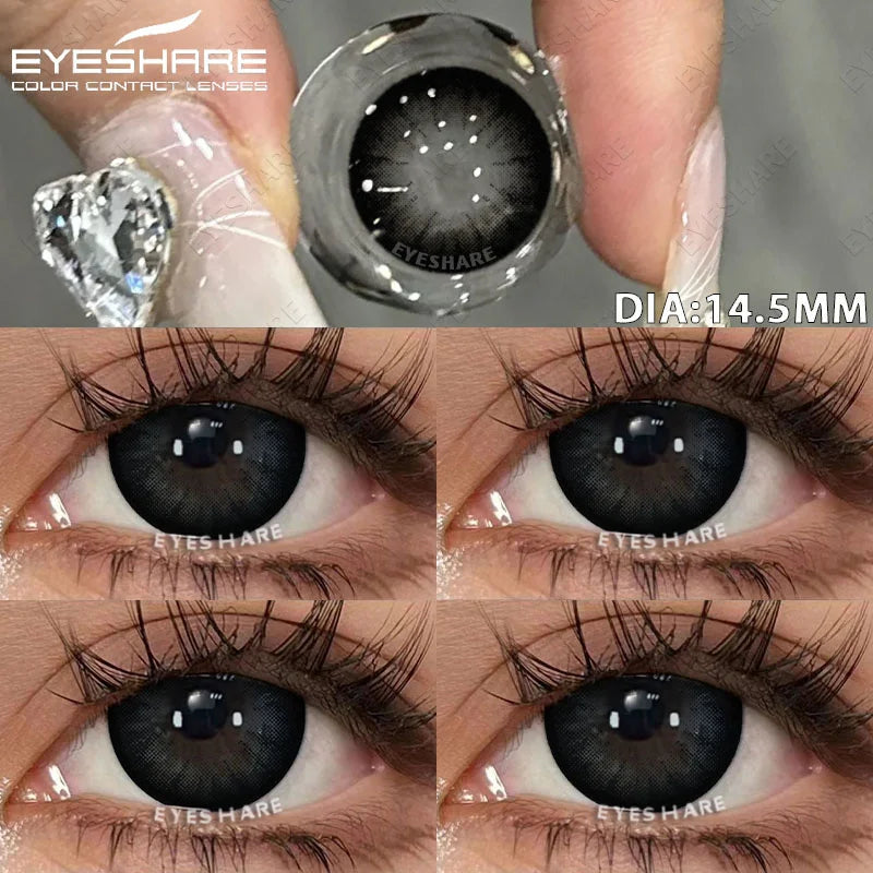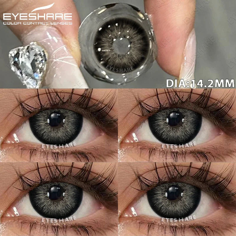 Yeknu 1pair Color Contact Lenses for Eyes Black Lenses Cosmetic Big Eye Lenses Gray Pupils Lens Yearly Natural Eye Contacts