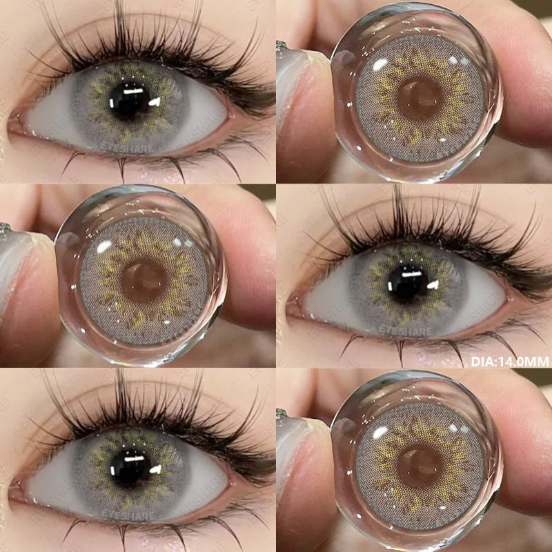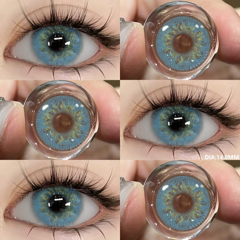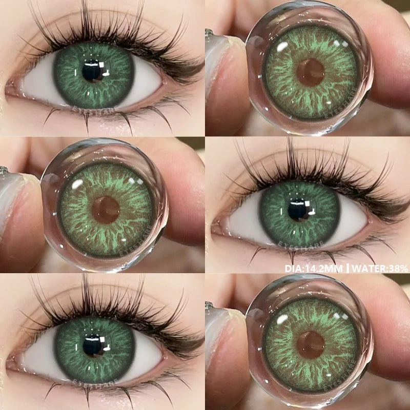 Yeknu 1Pair Colored Contact Lenses for Eyes Natural Brown Eye Lenses Gray Pupils Blue Eye Soft Lenses Yearly Green Contacts
