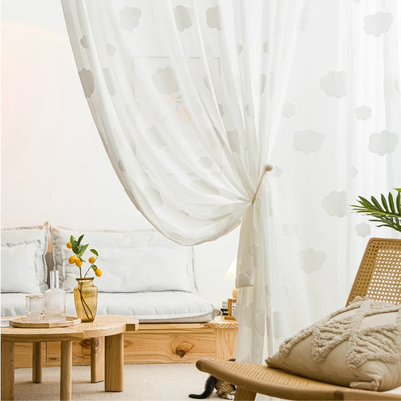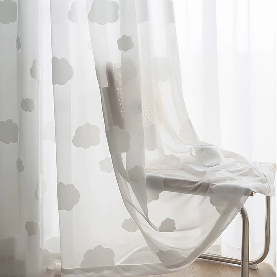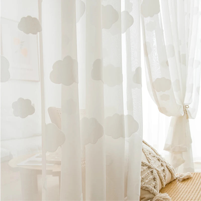 Yeknu 1PC Cartoon White 3D Cloud Curtain for Kids Baby Bedroom Sheer Drape Kindergarten Window Treatment