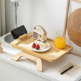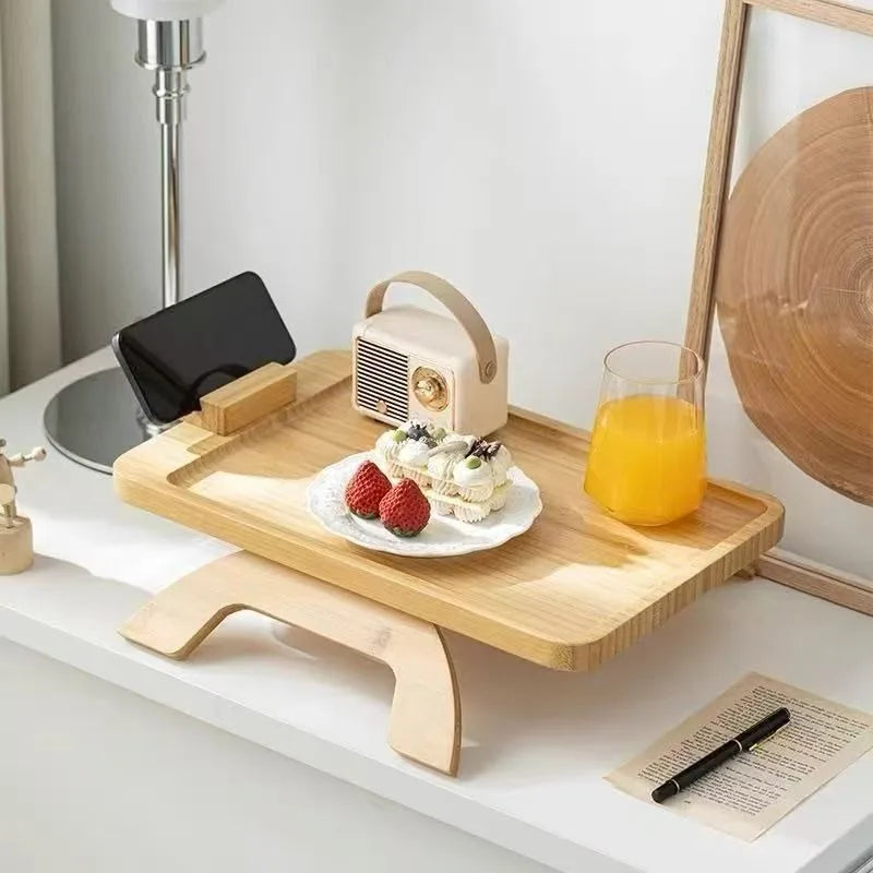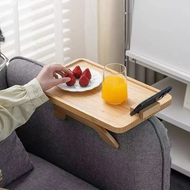 Yeknu 1pc New Style Bamboo Sofa Armrest Tray with Phone Holder Foldable No Assembly Required Ideal for Housewarming Home Decoration