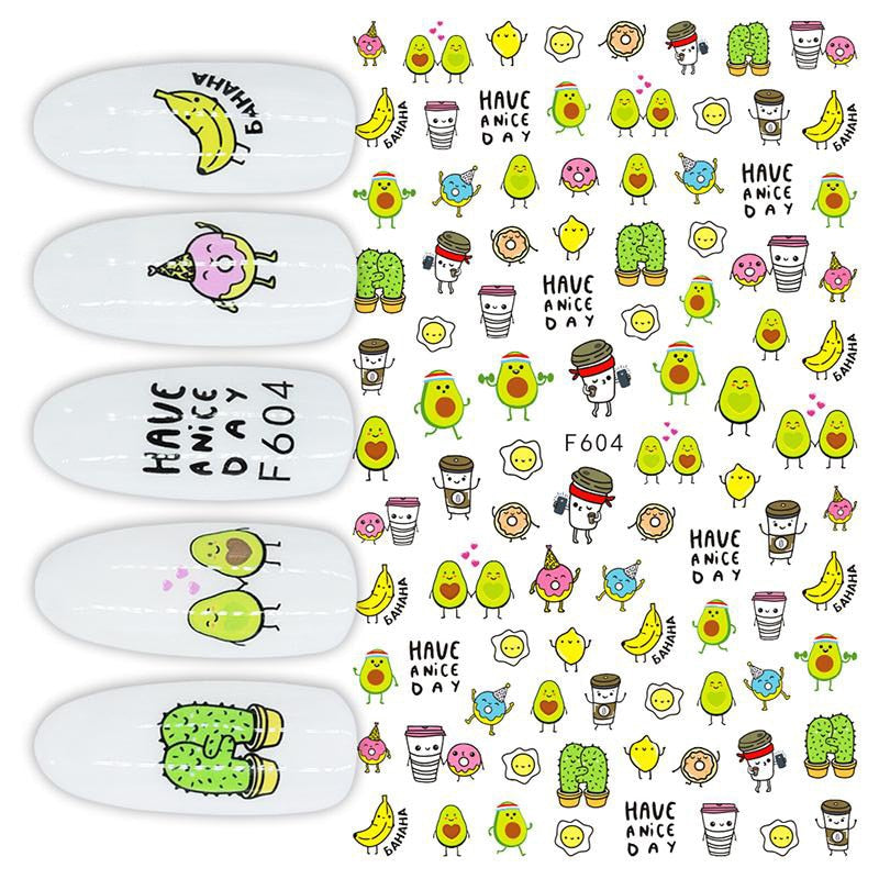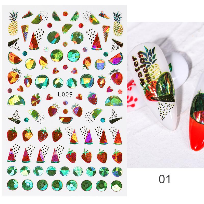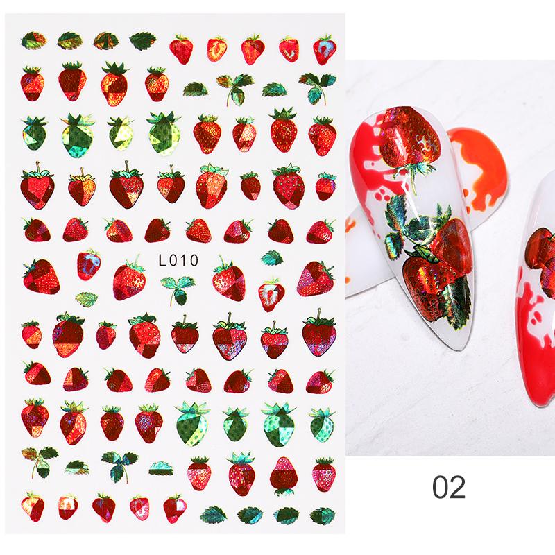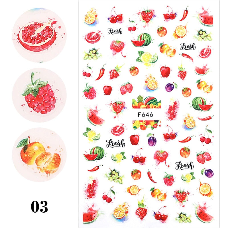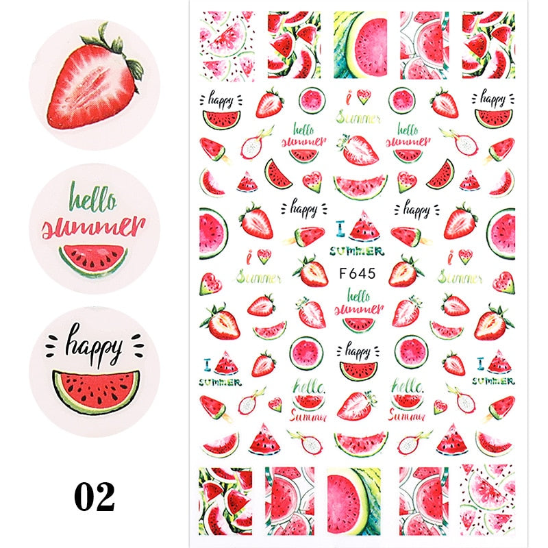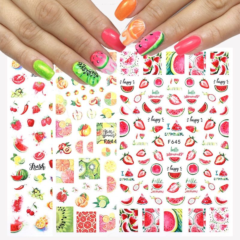 Yeknu 1PC Summer Watermelon Fruit 3D Nail Sticker Nail Decal Avocado Strawberry Nail Art Decoration Accessories Manicure Nail Design