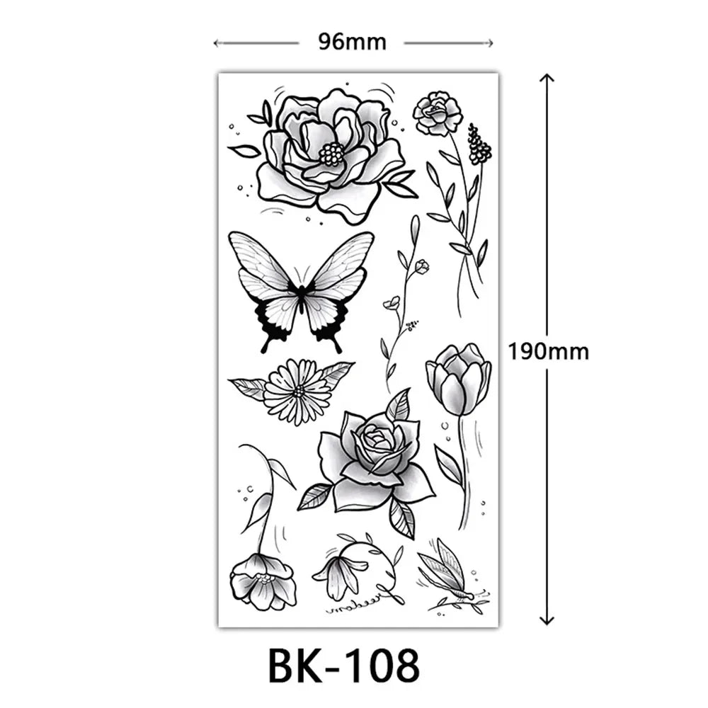 Yeknu 1PCS Sketch Flower Tattoo Sticker Black Datura Arm Legs Tattoo Temporary Waterproof Lasting Sexy Tattoo Sticker For Women Body