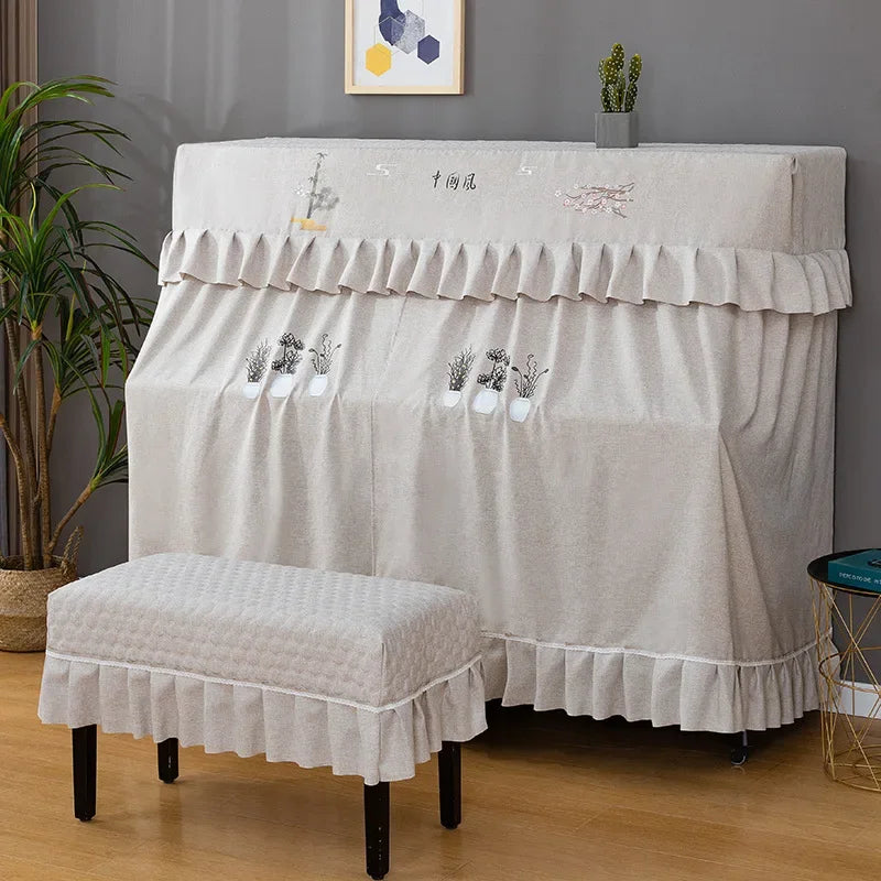 Yeknu 1pcs Thickened Piano Cover European Style Fabric Does Not Take Off Piano Cover When Starting Up Dust Proof Stool Cover
