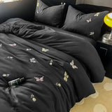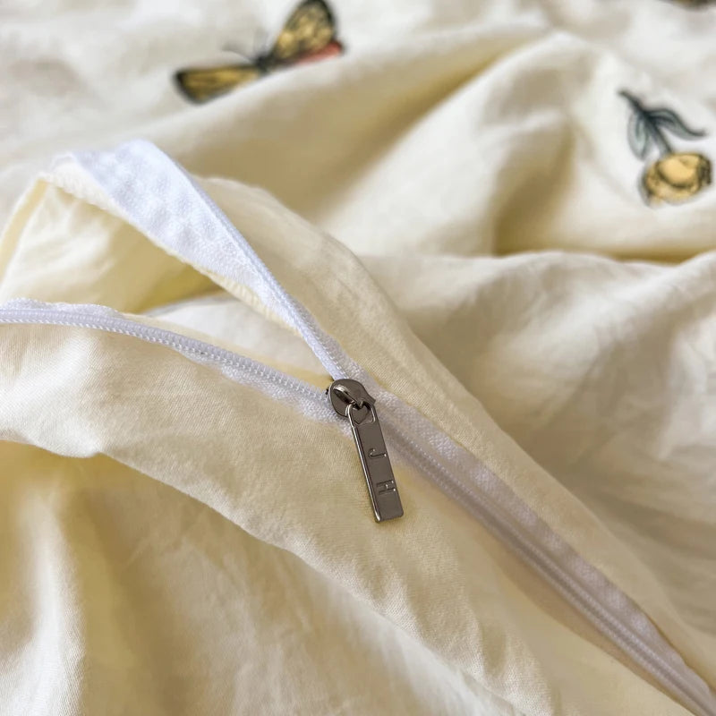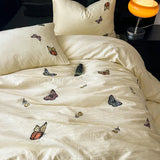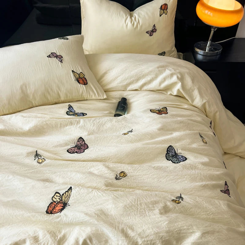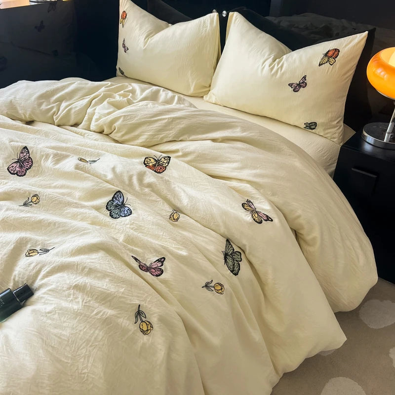 Yeknu 2/3/4Pcs Luxury Butterfly Embroidery Bedding Set Soft Skin-friendly Washed Cotton Duvet Cover Single Full Queen King Bed Set