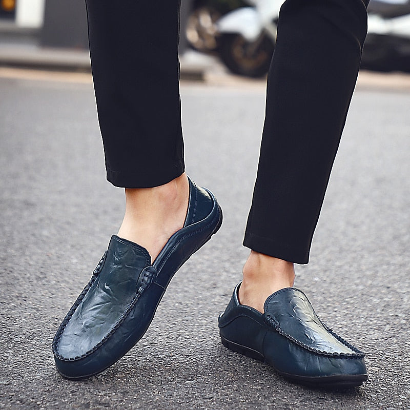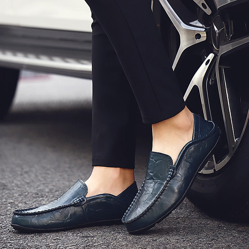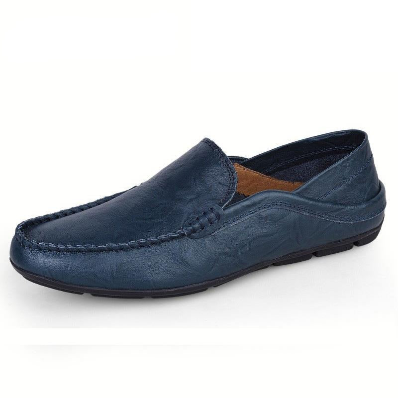 Yeknu New Soft Leather Shoes Fashion Men Casual Leather Shoes Slip On Men Loafers