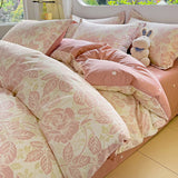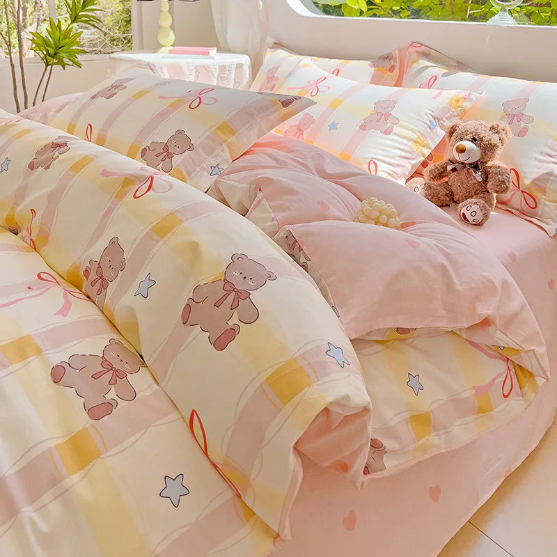 Yeknu 2024 Hot Japanese Style 100% Cotton Bedding Set Printed Four Piece Set Pure Cotton Bed Sheet Set Duvet Cover Queen King Size