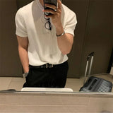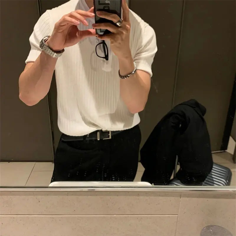 Yeknu 2024 Spring Men's Clothing T Shirt for Men Short Sleeve Knitted Stretch Korean Style Solid Color Retro Summer Slim Fit Men's Top