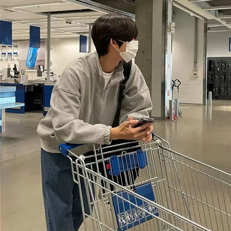 Yeknu 2024 Spring New Korean Fashion Stand Collar Sweatshirts for Men Loose Casual Solid Color Long Sleeve Pullover Hoodies for Men