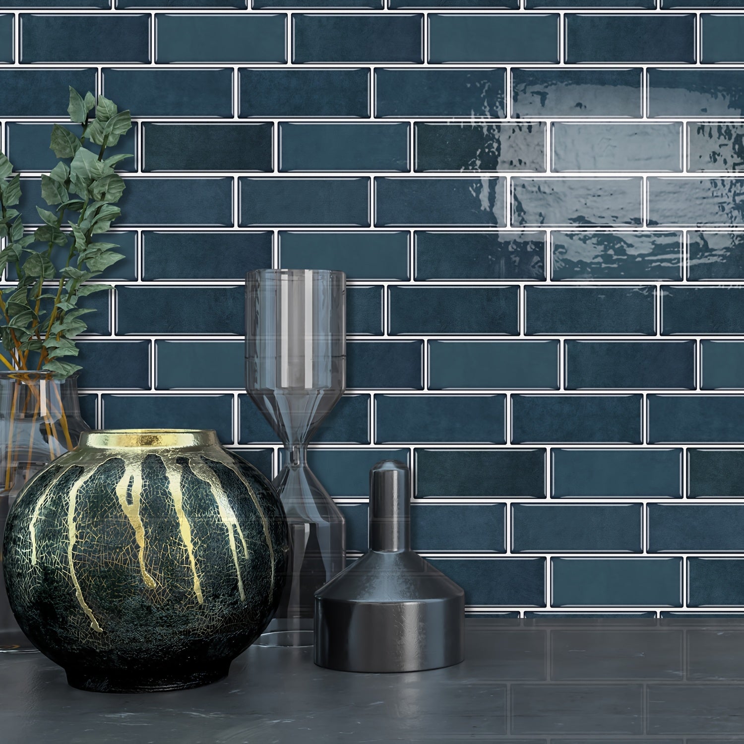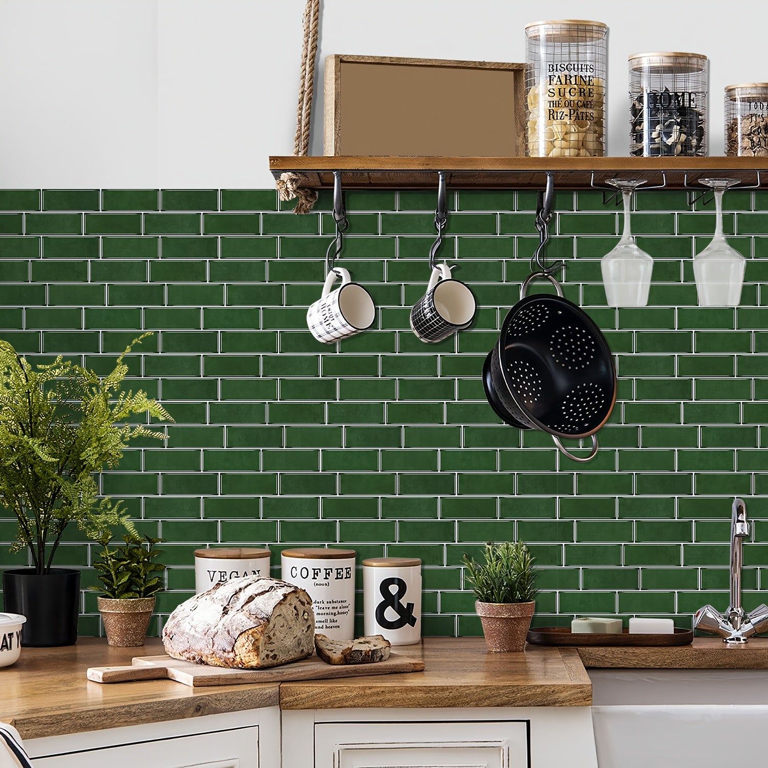 Yeknu 20pcs Green & Blue Self-Adhesive Subway Tile Stickers - Waterproof Anti-Splash Vinyl Glossy Wall Panels, Peel & Stick Grid Pattern Tile Decals for Kitchen Bathroom Balcony Restaurant Decor, 12 Inch, Bathroom Upgrade