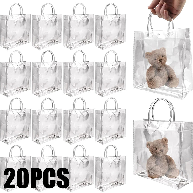 Yeknu 20Pcs Transparent Gift Bags with Handle Wedding Kids Birthday Party Favors Christmas New Year PVC Gift Packaging Bag Baby Shower