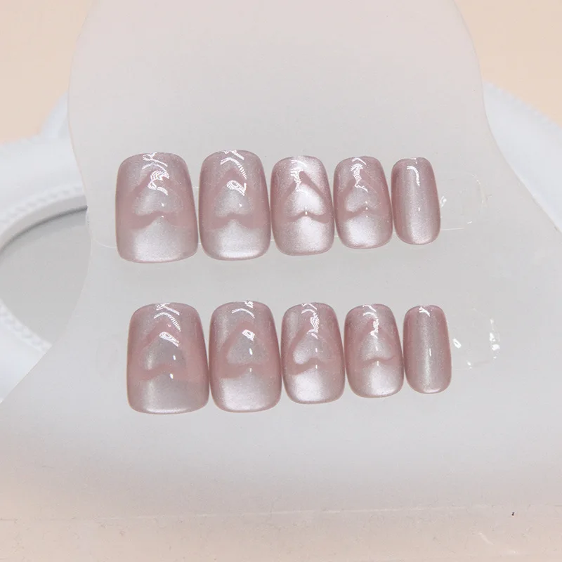 Yeknu 24 pcs short square simple French cat eye love nails +1 nail glue +1 nail file