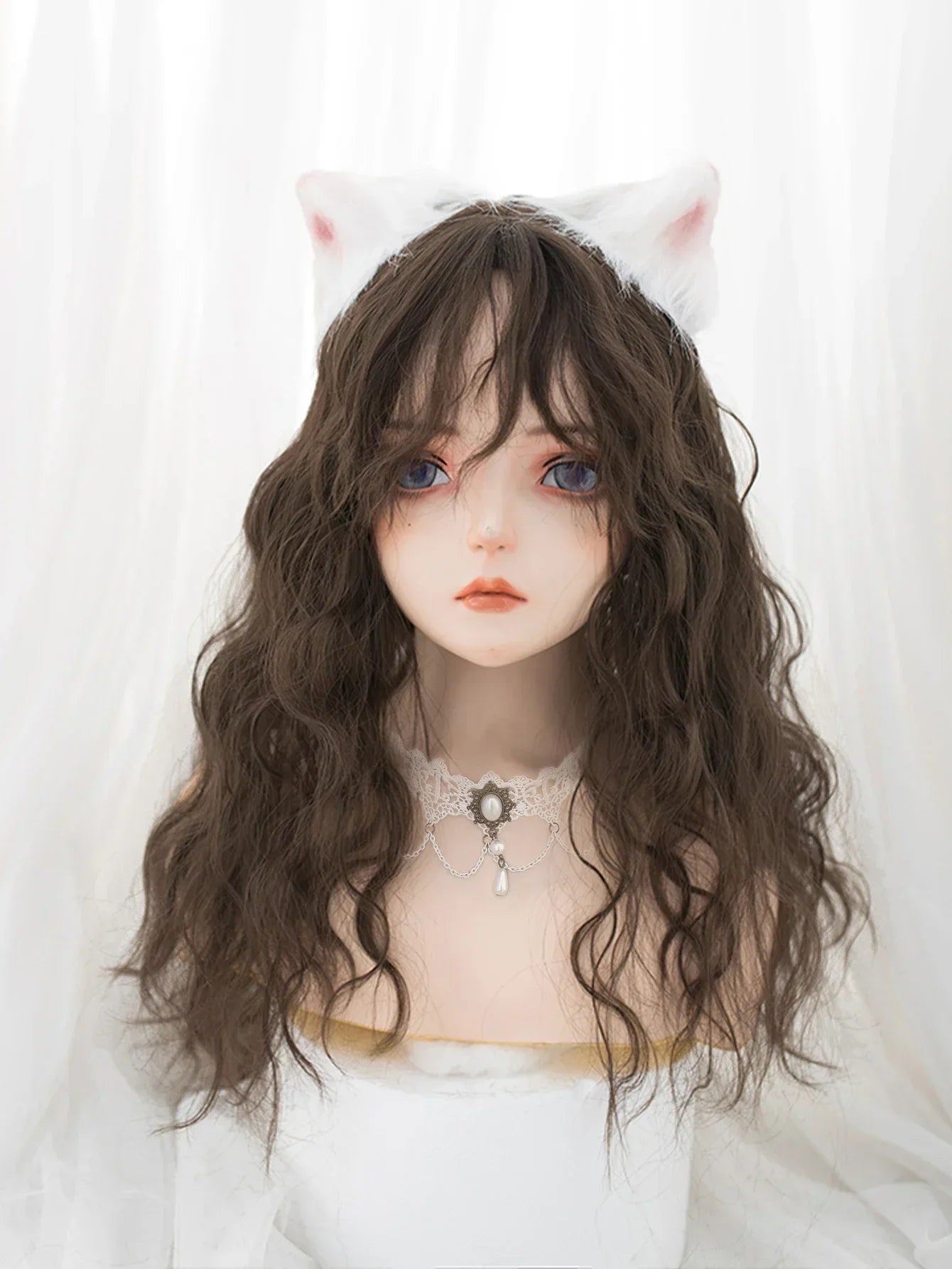 24Inch Brown Color Synthetic Wigs Middle Part Long Natural Wavy Hair Wig For Women Daily Use Cosplay Drag Queen Heat Resistant