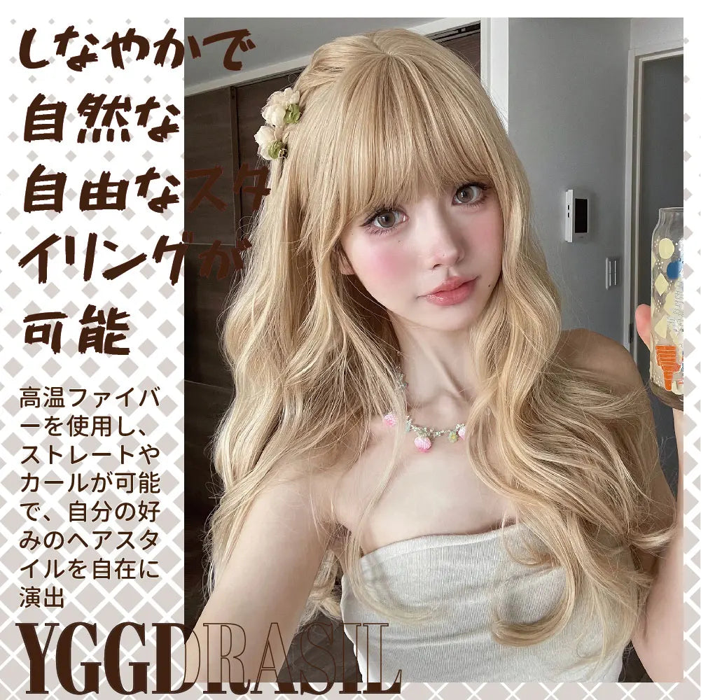 Yeknu 24Inch European Blonde Synthetic Wigs With Bangs Medium Wavy Hair Wig For Women Daily Use Cosplay Drag Queen Heat Resistant