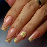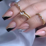Yeknu 24Pcs Fashion French False Nails Mid-length Ballet Fake Nail Tips Zebra Pattern Design Square Head Wearable Press on Nails