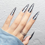 24Pcs Long Almond Stiletto False Nails Silver Base Ivy Design Press on Fake Nails Simple Wearable Nail Tips with Glue