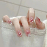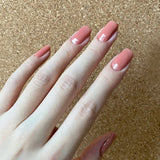 24Pcs Nude Pink Nail Tips Short Round Head False Nails with Design Wearable Finished Fake Nails Full Cover Press on Nails