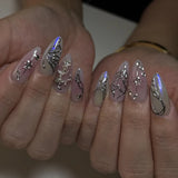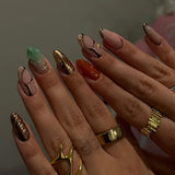 24Pcs Simple French Fake Nails with Almond Head Design Detachable 3D Irregular Star Pattern Press on False Nails Manicure Tools