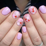 Yeknu 24Pcs Square Press-on Nails Set with Pink Flower Patterns Full Cover Acrylic French Nail Tips Adhesive For Stylish Women/Girls