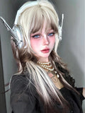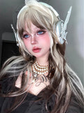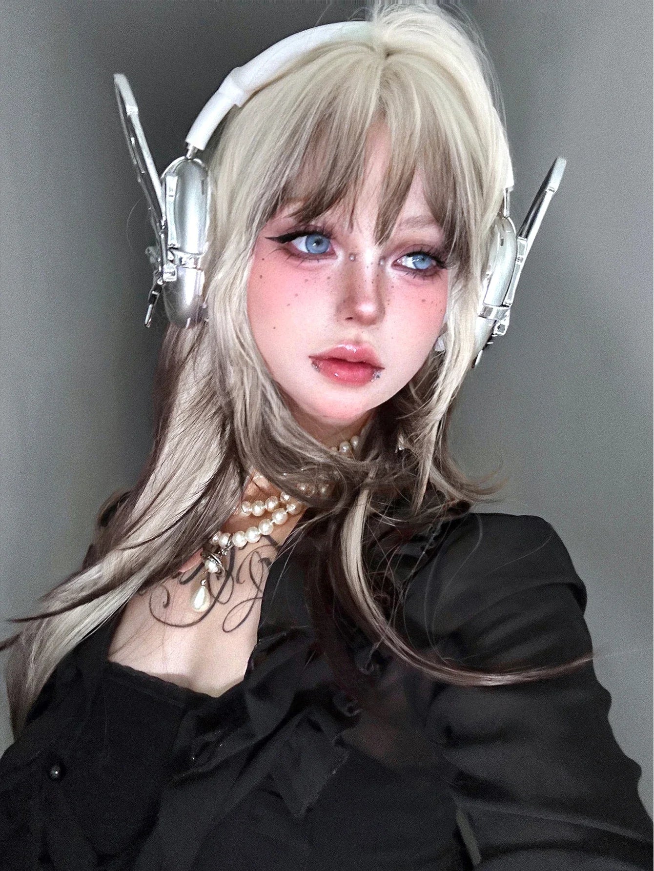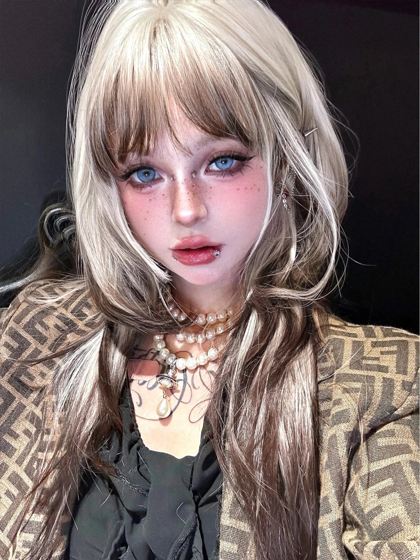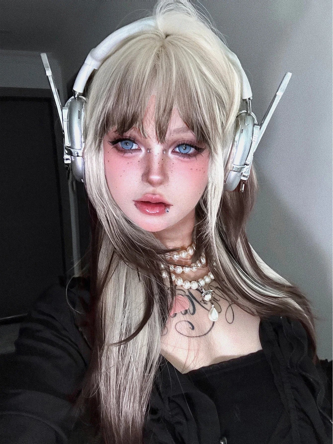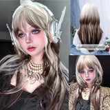 26Inch Blonde Brown Ombre Aloof Style With Bang Synthetic Wigs Long Straight Hair Wig for Women Daily Use Cosplay Heat Resistant