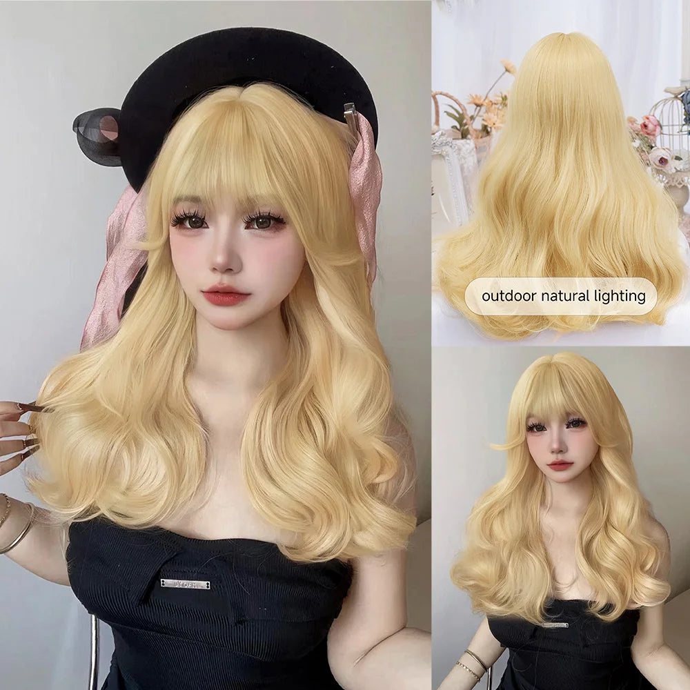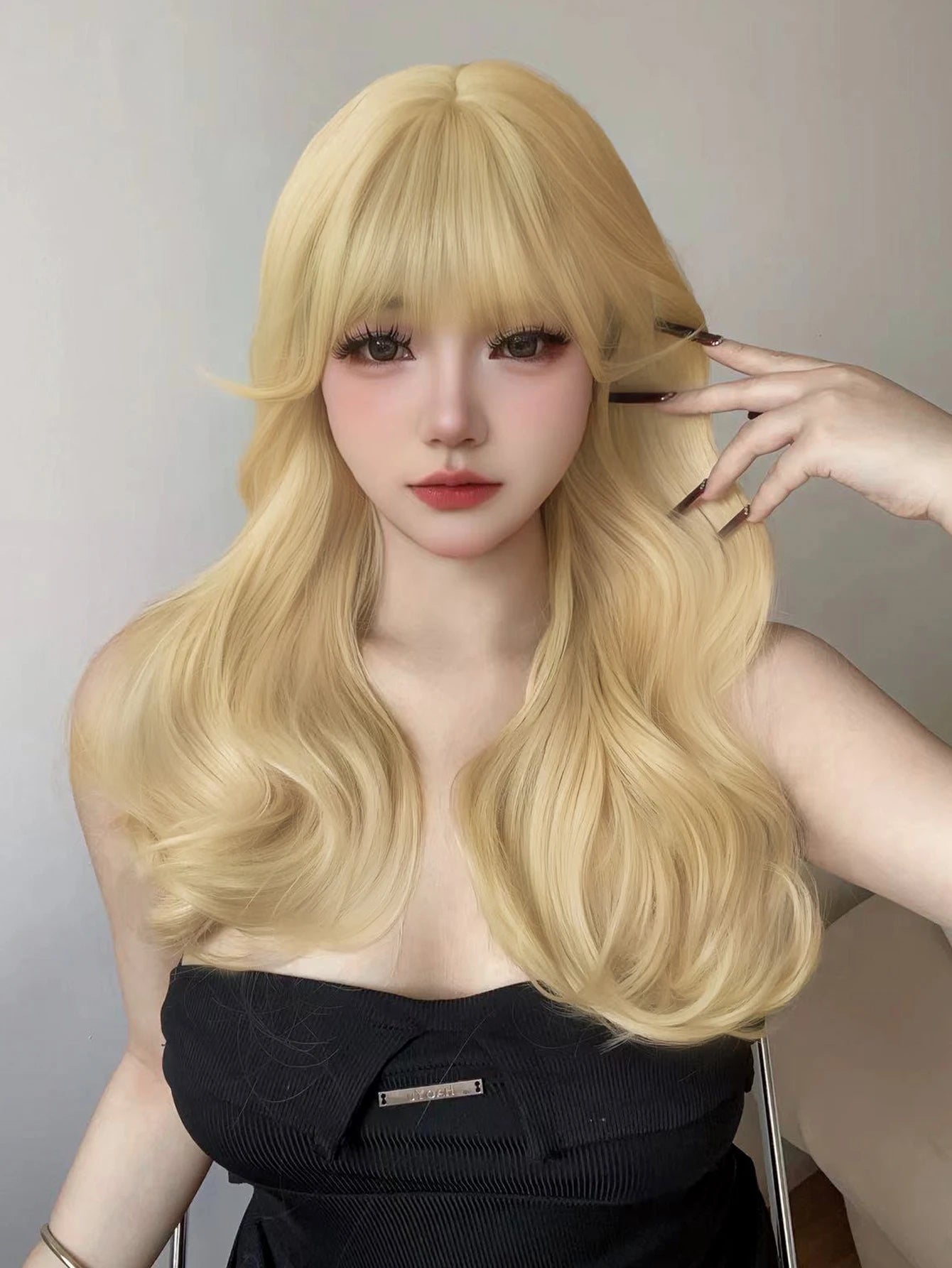 26Inch Blonde Lolita Lady Synthetic Wigs With Bang Long Natural Wavy Hair Wig For Women Daily Cosplay Drag Party Heat Resistant