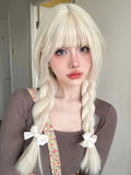 26Inch Blonde Platinum Golden Synthetic Wigs With Bang Long Natural Straight Hair Wig for Women Hime Cut Cosplay Heat Resistant