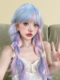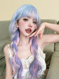 26Inch Fantasy Purple Mix Lolita Synthetic Wigs With Bang Long Natural Wavy Hair Wig For Women Cosplay Daily Use Heat Resistant