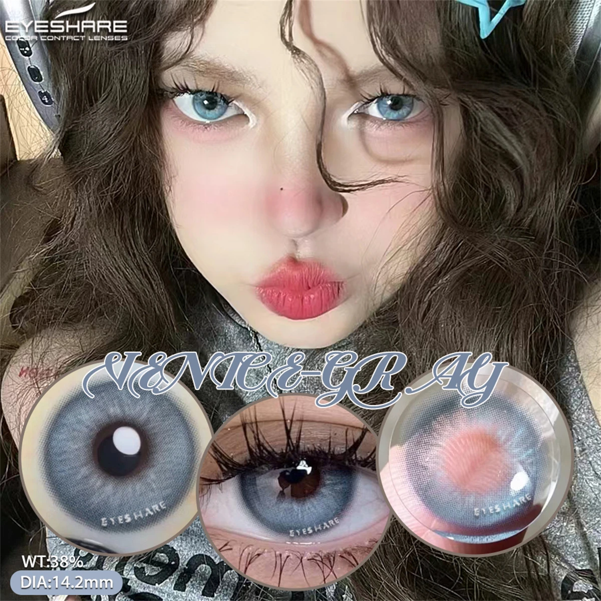 Yeknu 2Pcs Colored Contact Lenses Gray Contact Soft Naturally Cosmetics Colored Lenses Blue Beautiful Pupils Yearly use
