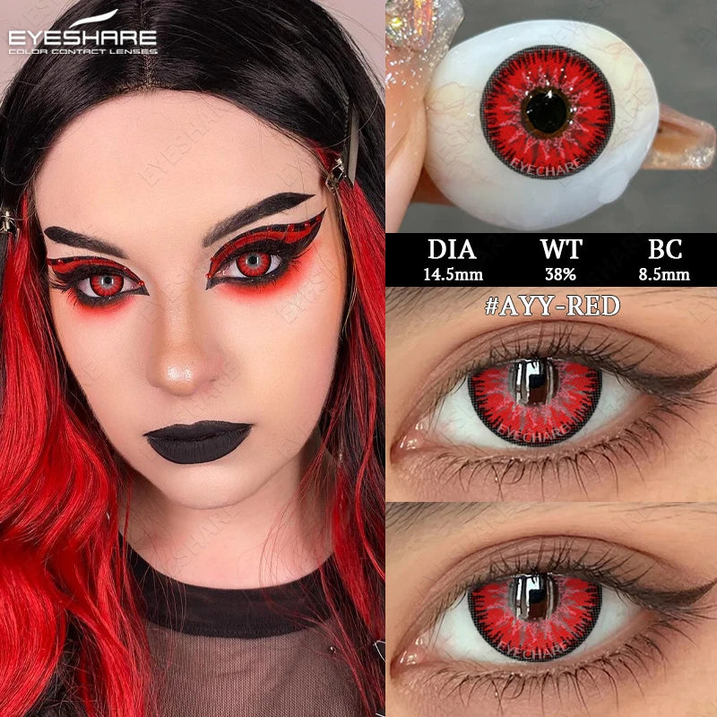 Yeknu 2pcs Halloween White Contact Lenses Anime Color Cosplay Black Lenses Crazy Red Beauty Makeup Lens multicolored lense