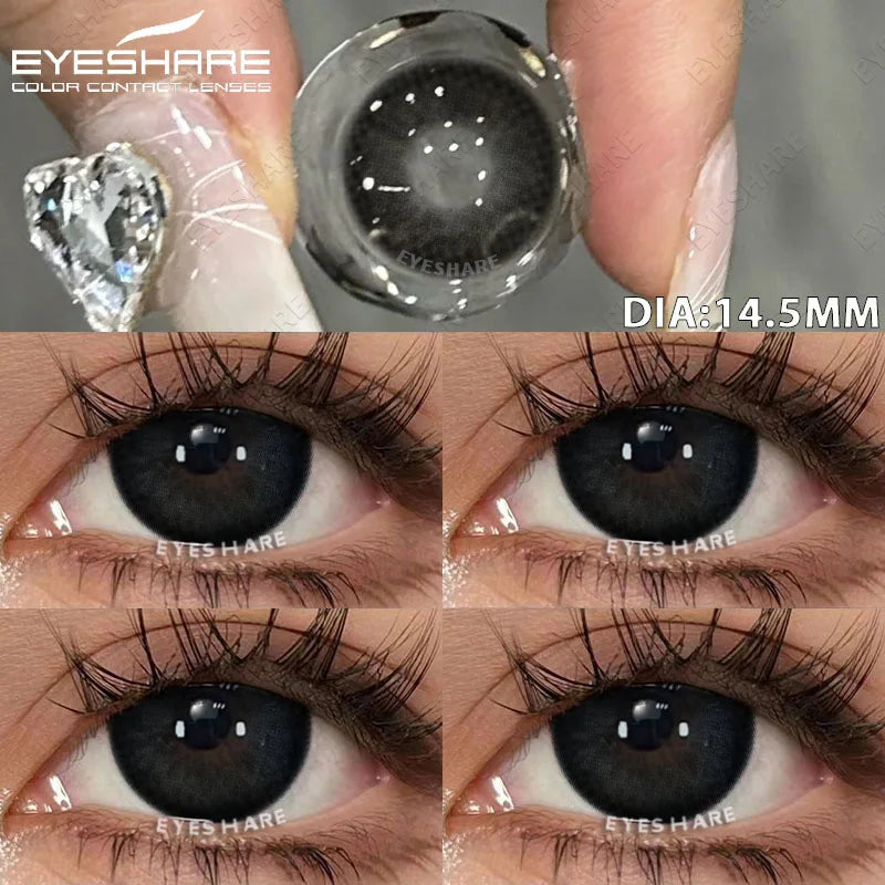 Yeknu 2pcs Natural Colored Contact Lens for Eyes Gray Color Lens Eye Beautiful Pupil Yearly Makeup Big Eye Lenses Black Lense