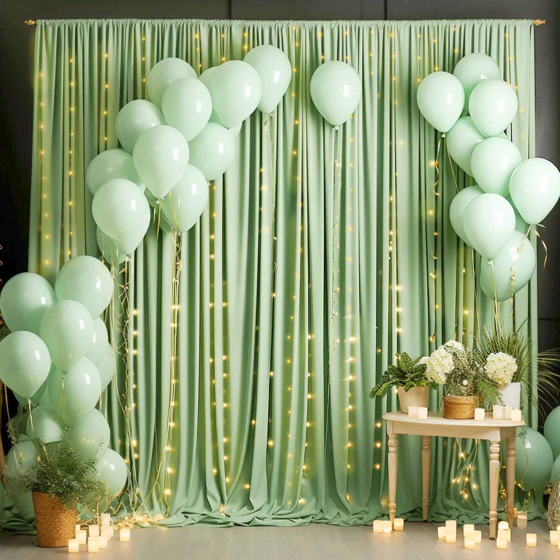Yeknu  2PCS Sage green Backdrop Curtain for Party Wedding Wrinkle Free Photo Curtains Backdrop Drapes Fabric Decoration for Baby Shower