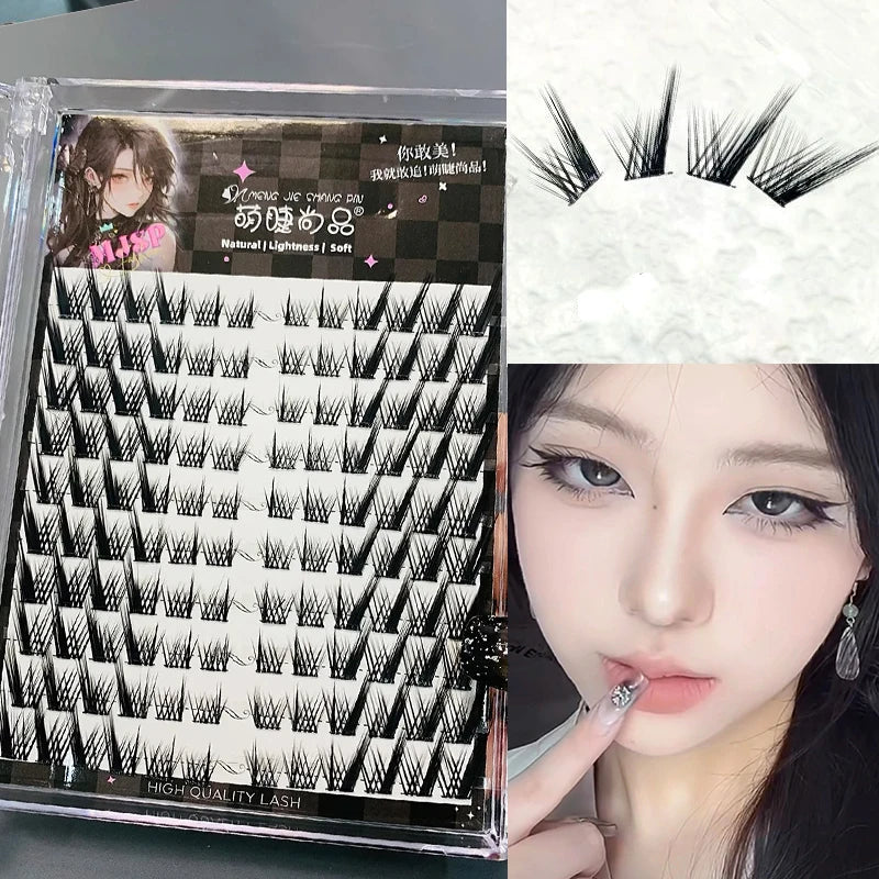 Yeknu  3/10 Rows Fox Eyes Effect False Eyelash Fluffy Bend Reusable Single Cluster Segmented Natural Thick Manga Lashes Extension Tool