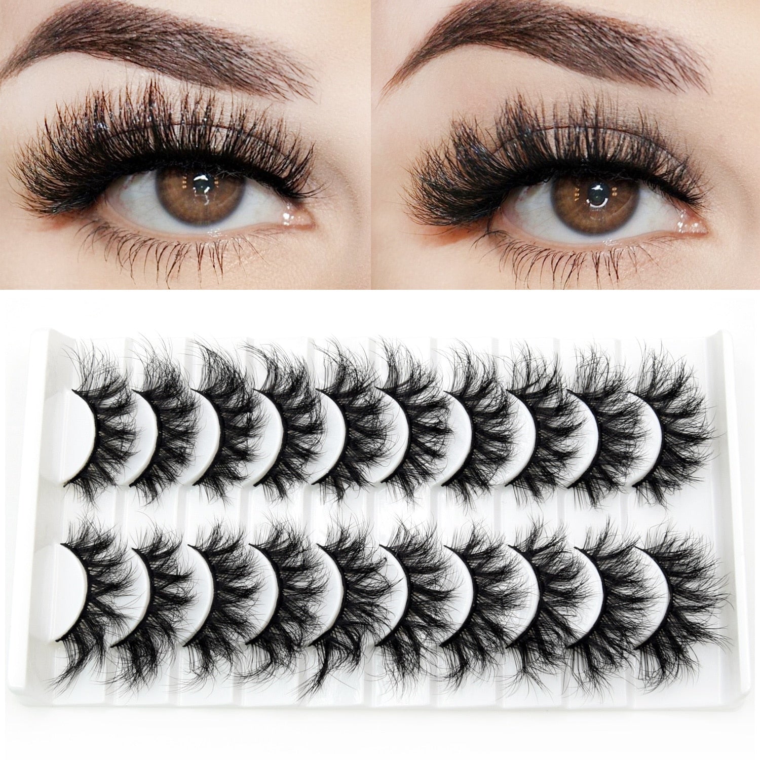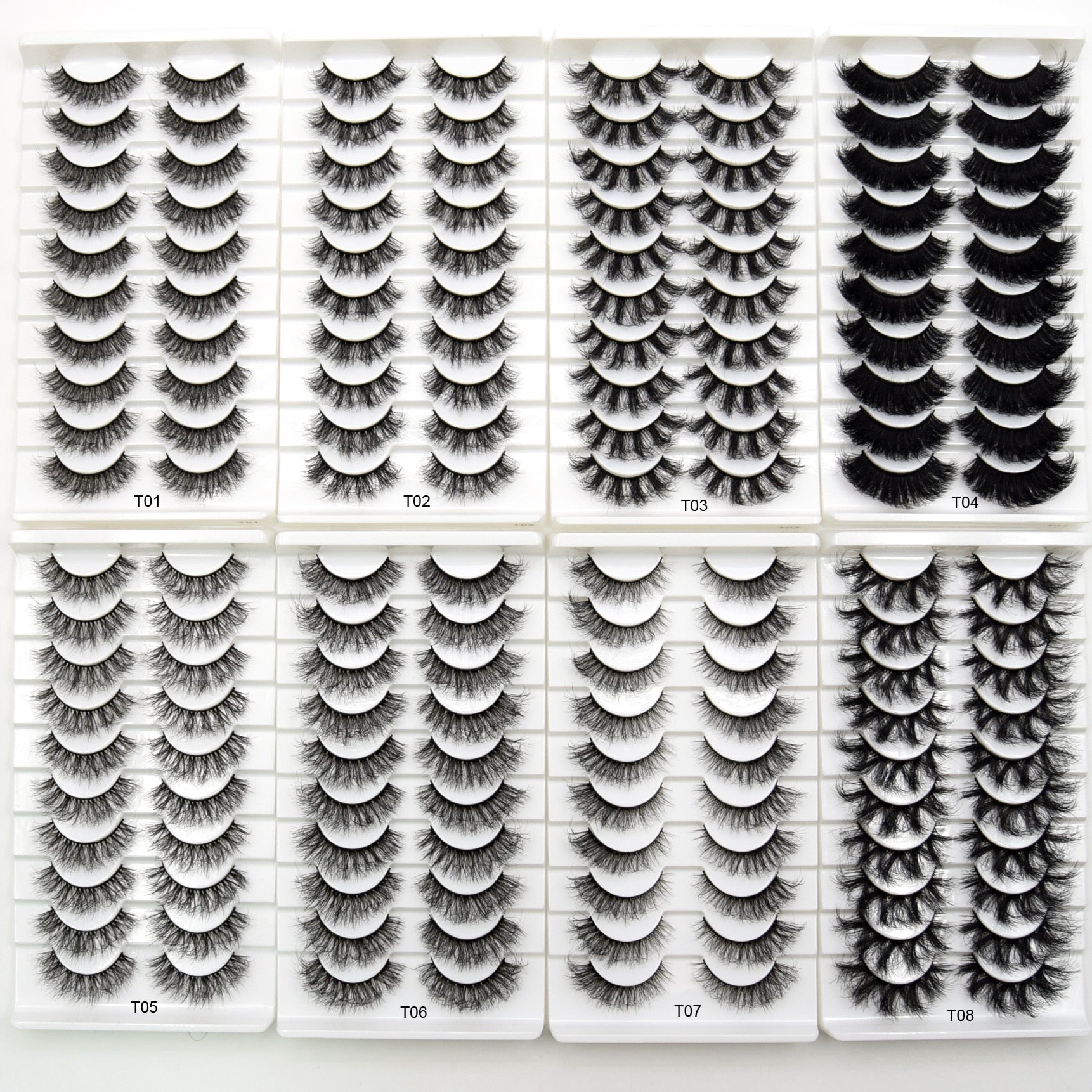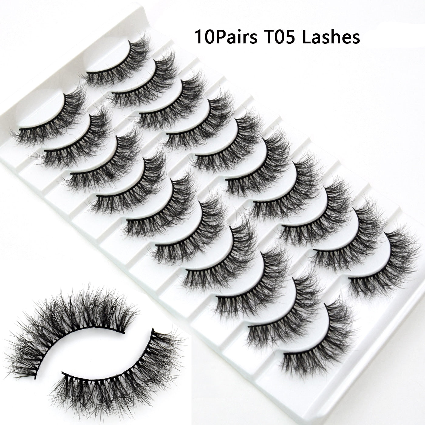 Yeknu 3/5/10pairs Faux Mink Eyelashes Thick Long False Eyelash Dramatic 3D Fake Eyelashes Makeup Lashes Fluffy Lash