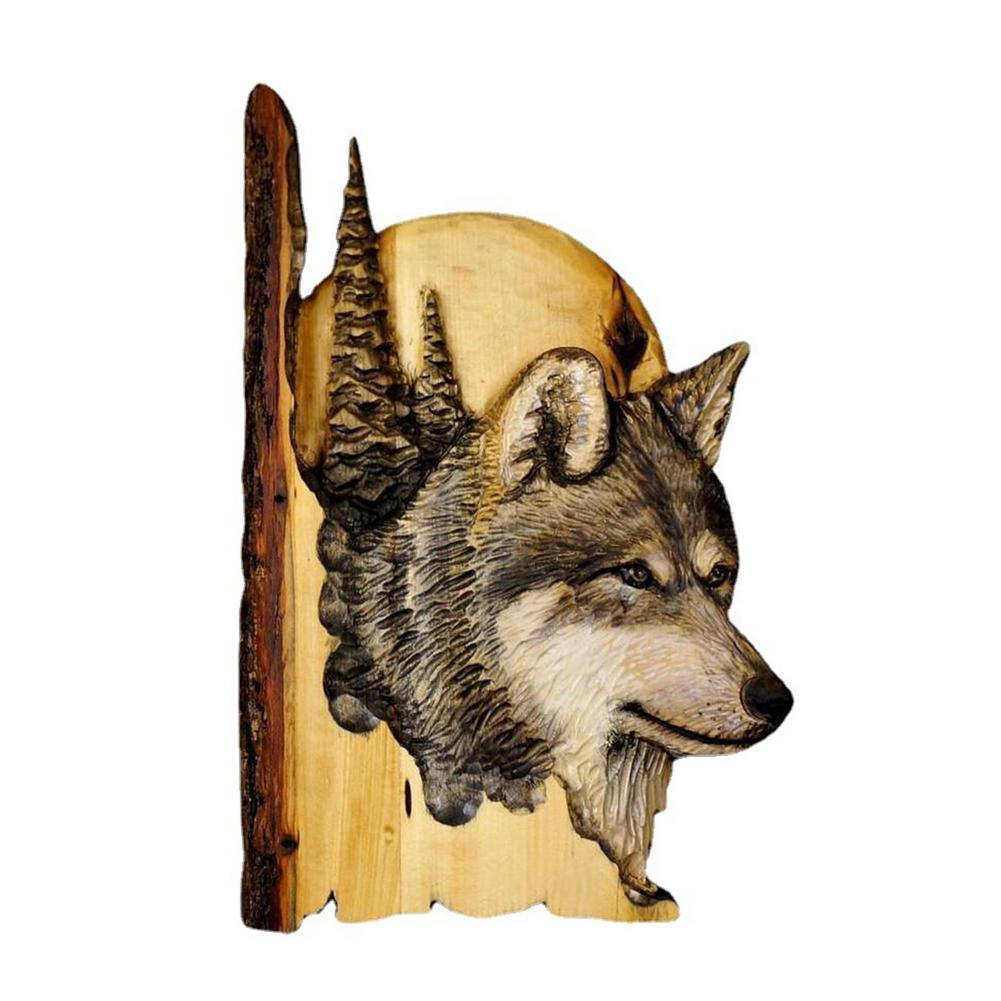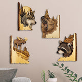 Yeknu 3D Animal Carving Handcraft Wall Hanging Sculpture Raccoon/Bear/ Deer/Wolf/Eagle Hand Painted Decorations for Home Living Room