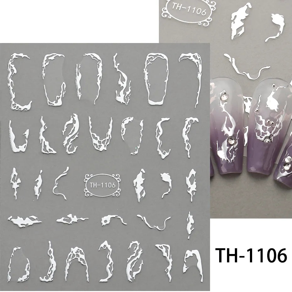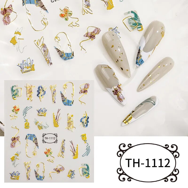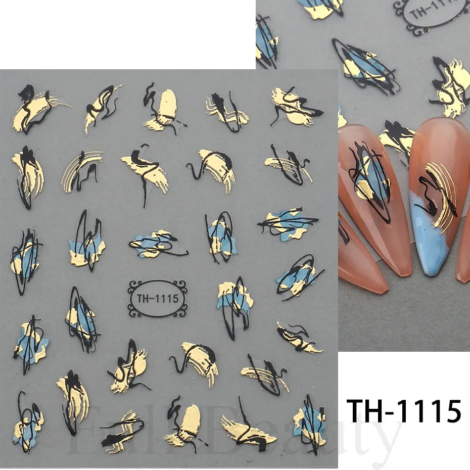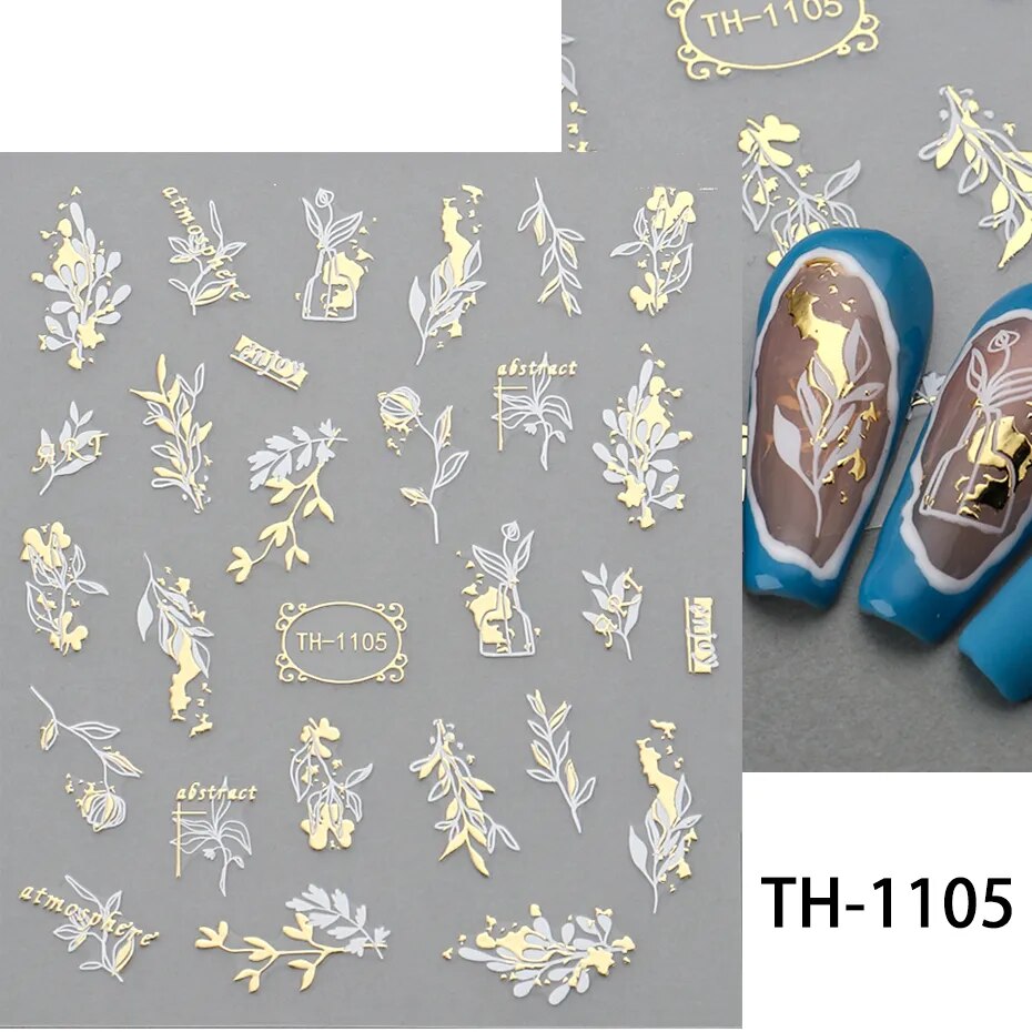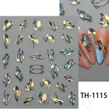 3D Golden Wave Line Nail Sticker Marble Blue Geometry Abstract Flowers Nail Art Sliders Decals Foils Manicure Decorations