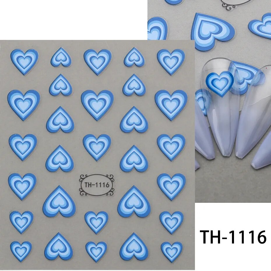 Yeknu - 3D Golden Wave Line Nail Sticker Marble Blue Geometry Abstract Flowers Nail Art Sliders Decals Foils Manicure Decorations CHTH