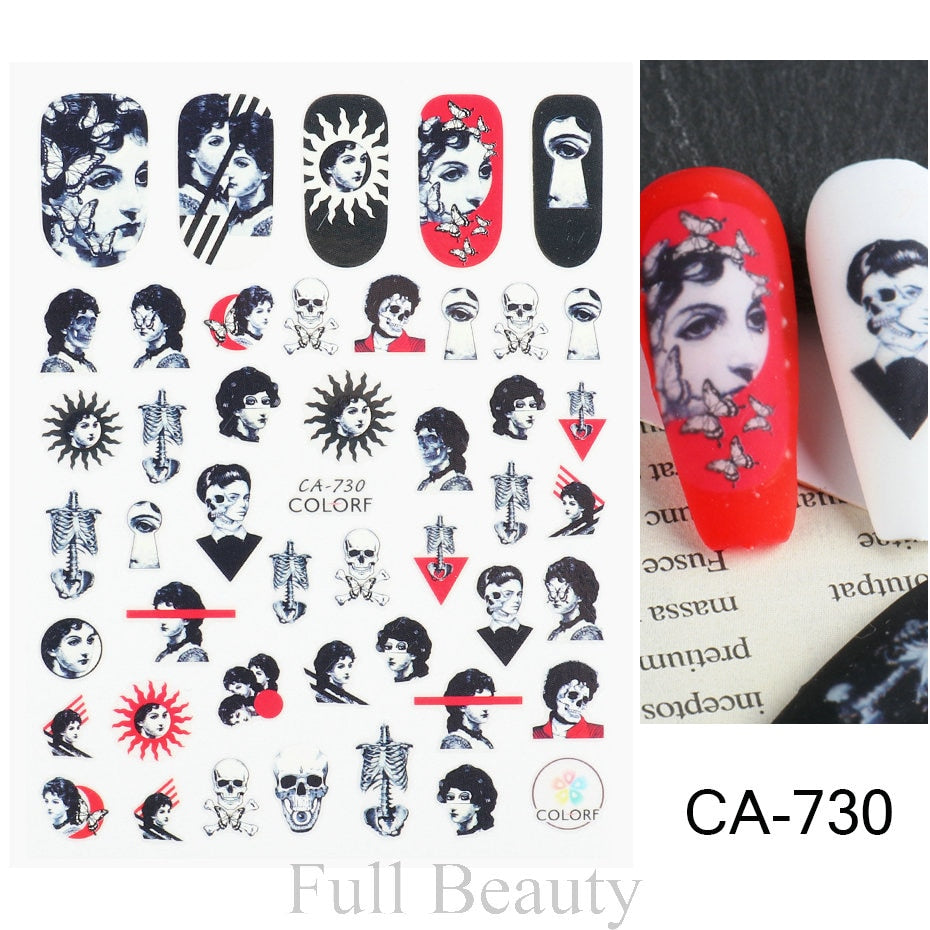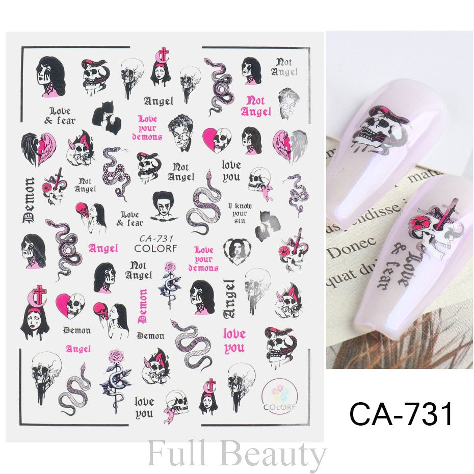 Designs: Black Snake skull vine leaf Colorful For Nails Stickers