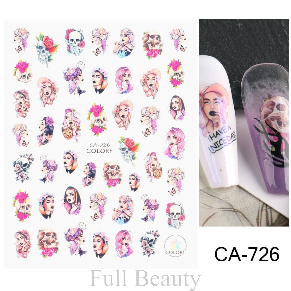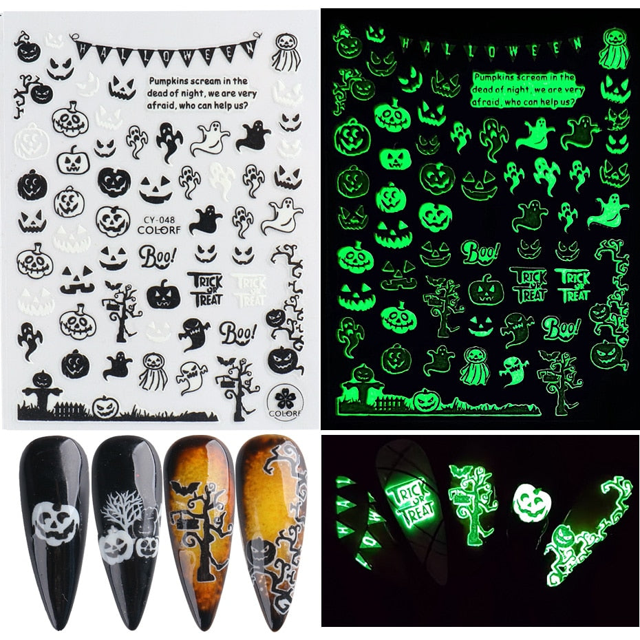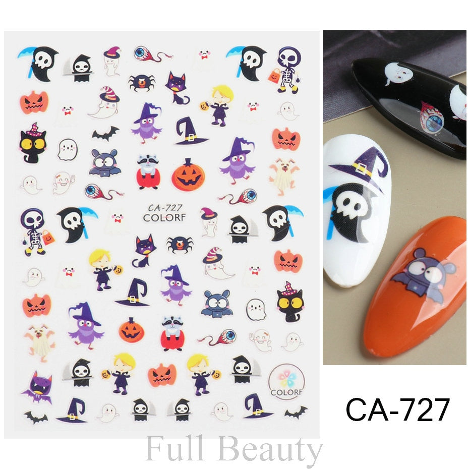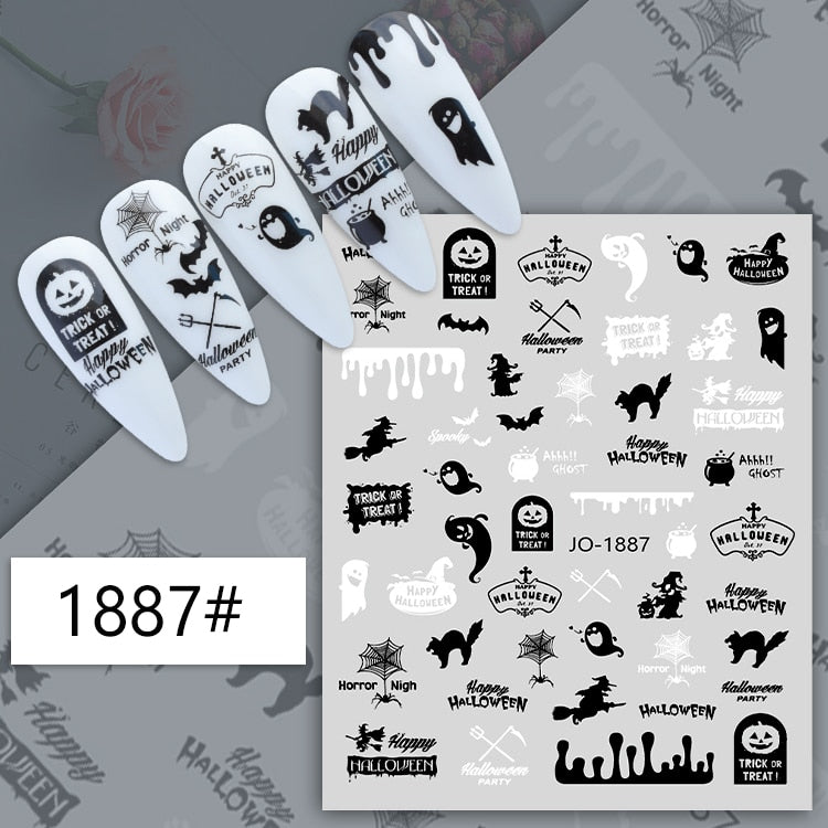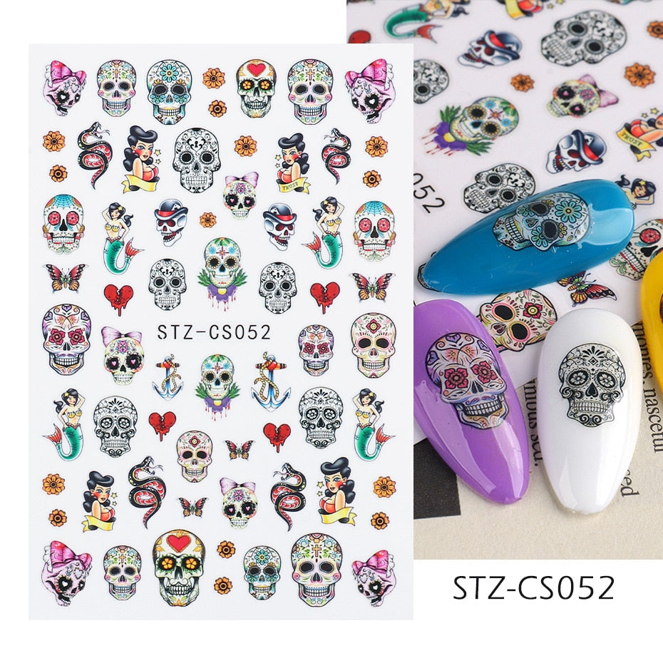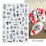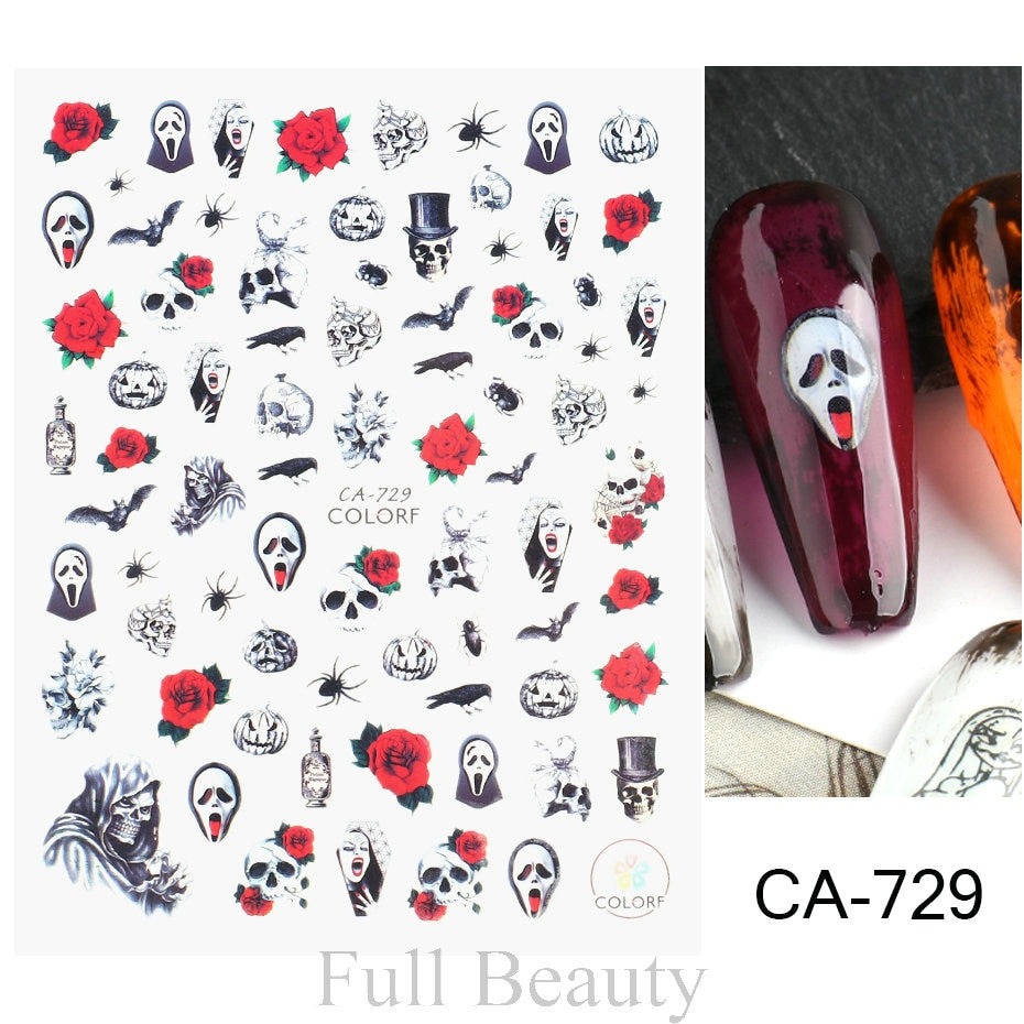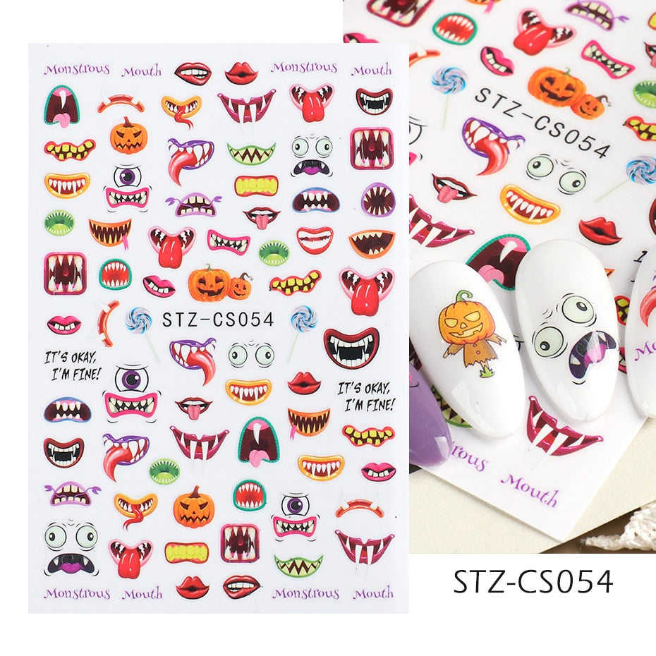 Yeknu 3D Halloween Nail Stickers Mouth Evil Eye Blood Slider Horror Skull Scream Face Self-Adhesive Decal Accessories Manicure TRF790